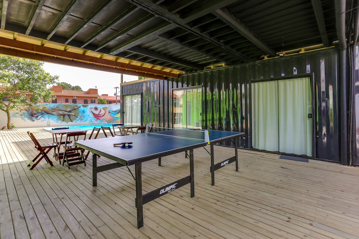 Situated in Florianópolis, 450 meters from Praia de Canasvieiras, Innbox - Canasvieiras features private and shared rooms. The property has an outdoor area with a pool and ping pong table, free private parking and Wi-Fi in all areas. Rooms at the hostel include air conditioning and a private bathroom. Innbox - Canasvieiras offers a barbecue. You can also play table tennis on site.