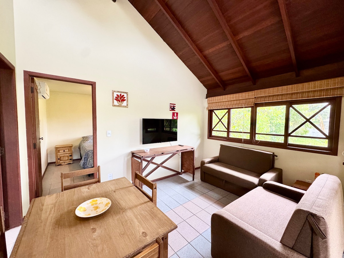Cabin with direct and exclusive access to the beach, 30 steps to the sand. It has a panoramic view over Pântano do Sul bay, cozy, well decorated and with all comfort in a peaceful environment. Comfortable for 2 adults + 2 in the living room (ideal for children). - Full kitchen, - Air conditioning, - Bed and bath linens, - Barbecue grill, - Beach chairs and umbrella, - Pet friendly, with enclosed garden, - Private gazebo overlooking the beach, - Wifi (400mb).