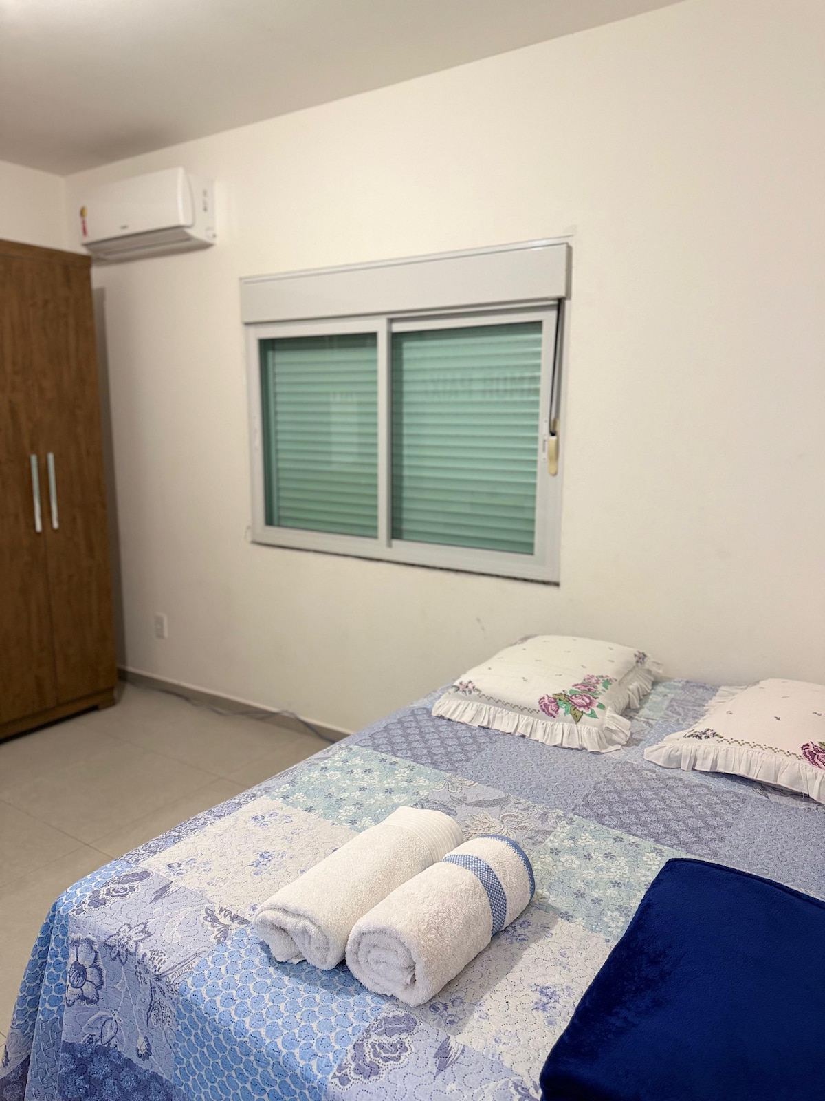 Local iluminado e arejado com cama de casal, cortina blackout, tv, ventilador e wi-fi; banheiro anexo na área EXTERNA, de uso exclusivo do hóspede; cozinha completa com fogão, geladeira e microondas, utensílios e churrasqueira. O espaço fica na minha casa, mas é todo de uso exclusivo do hóspede, o pátio é compartilhado, Então se você gosta de Compartilhar Sorrisos será Muito Bem Vindo Temos 2 gatinhos que fazem parte da família e circulam por todo o quintal Estacionamento APENAS PARA MOTO