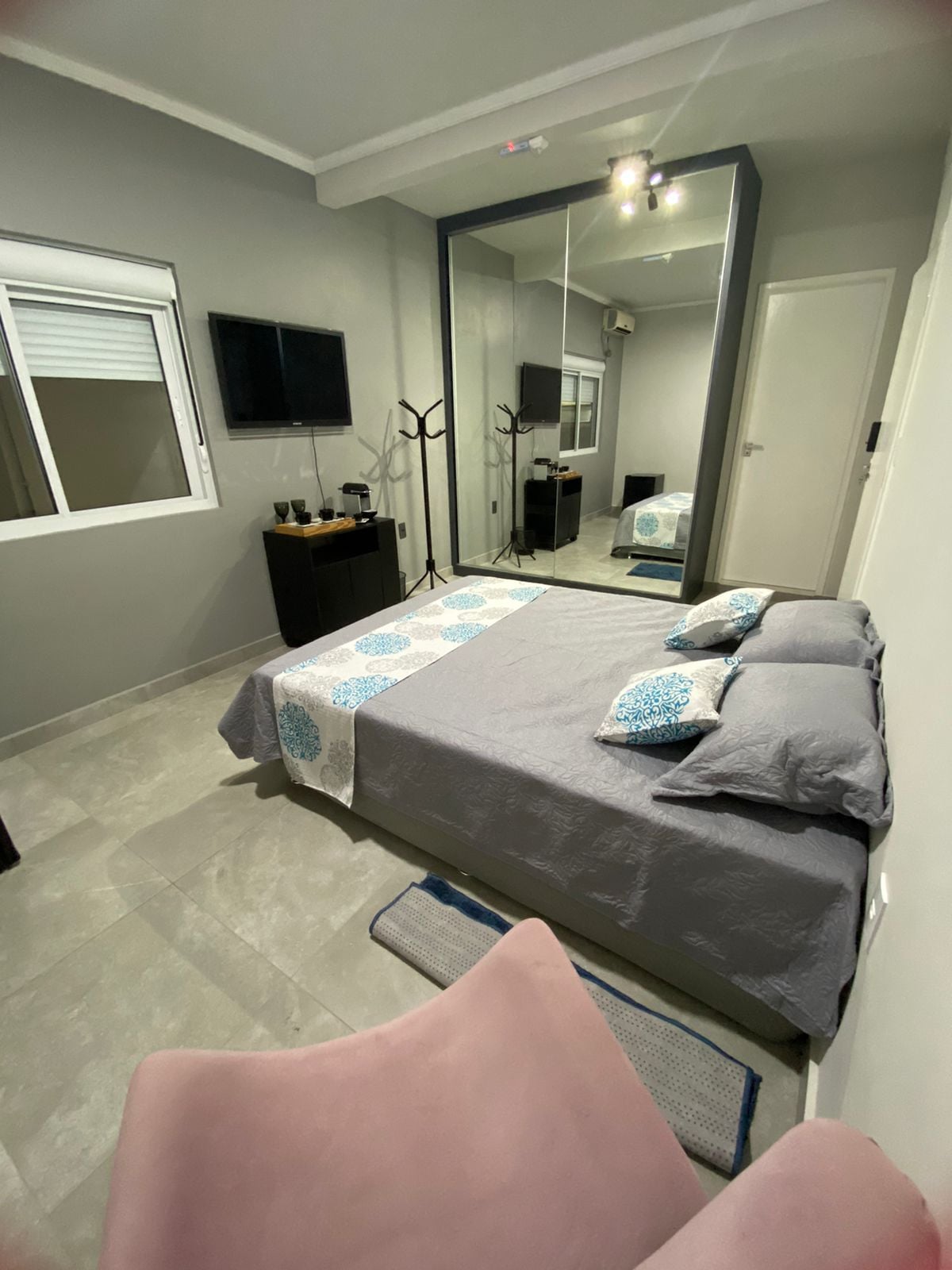 Suíte Maldivas - Esta acomodação elegante é perfeita para viagens em casal. Pertinho da praia (350 metros aproximadamente), mercados e outras comodidades. Fica em rua tranquila próximo do centrinho de canas, supermercado e todo o necessário para uma excelente estadia. Distâncias caminhando: 4 minutos do mar (aproximadamente 350 metros da praia); 5 minutos do supermercado; 1 minuto de ponto de ônibus (tranquilo para uber também); 6 minutos do centrinho; 8 minutos da farmácia.