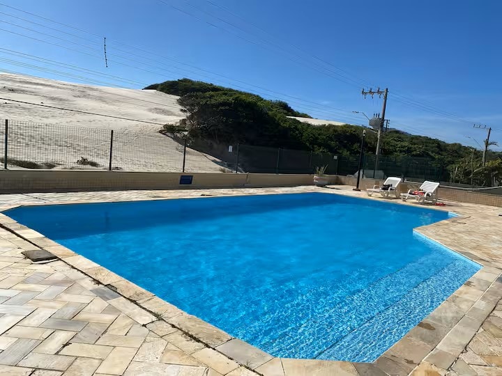 Flat com cama de casal e sofa-cama super confortável, cozinha planejada contém pia, fogao, frigobar e micro-ondas. Equipada Smart TV 32". Mobiliário novinho pra vc desfrutar de suas féria com muito conforto, num condomínio que oferece piscina com toboágua, piscina aquecida, churrasqueira e salão de jogos!!! Tudo isso na beira da praia dos Ingleses!!