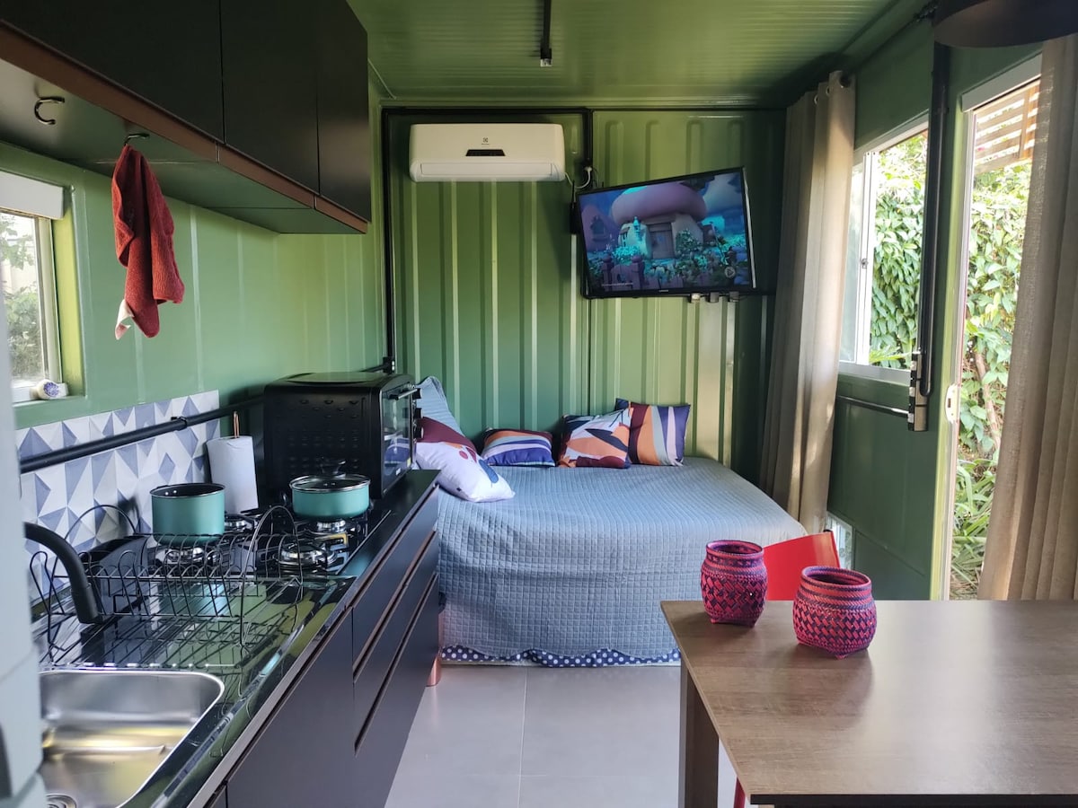Esta é a "Suíte Container" da VILLA DO SER. Aqui você vai ter cozinha compacta, cama de casal com colchão (D33), Smart TV, WIFI, Ar Cond. Split Quente/Frio e Banheiro Privativo. Na Villa temos mais 4 micro-casas e a "Casinha do Meio": nosso Espaço Zen com Terapias Integrativas, REIKI, Reflexologia, SPA dos Pés e Estética Facial 100% Natural. Clicando na nossa foto abaixo do mapa vc pode ver nosso Perfil Airbnb e conferir a disponibilidade, preços e fotos das outras casinhas🙂