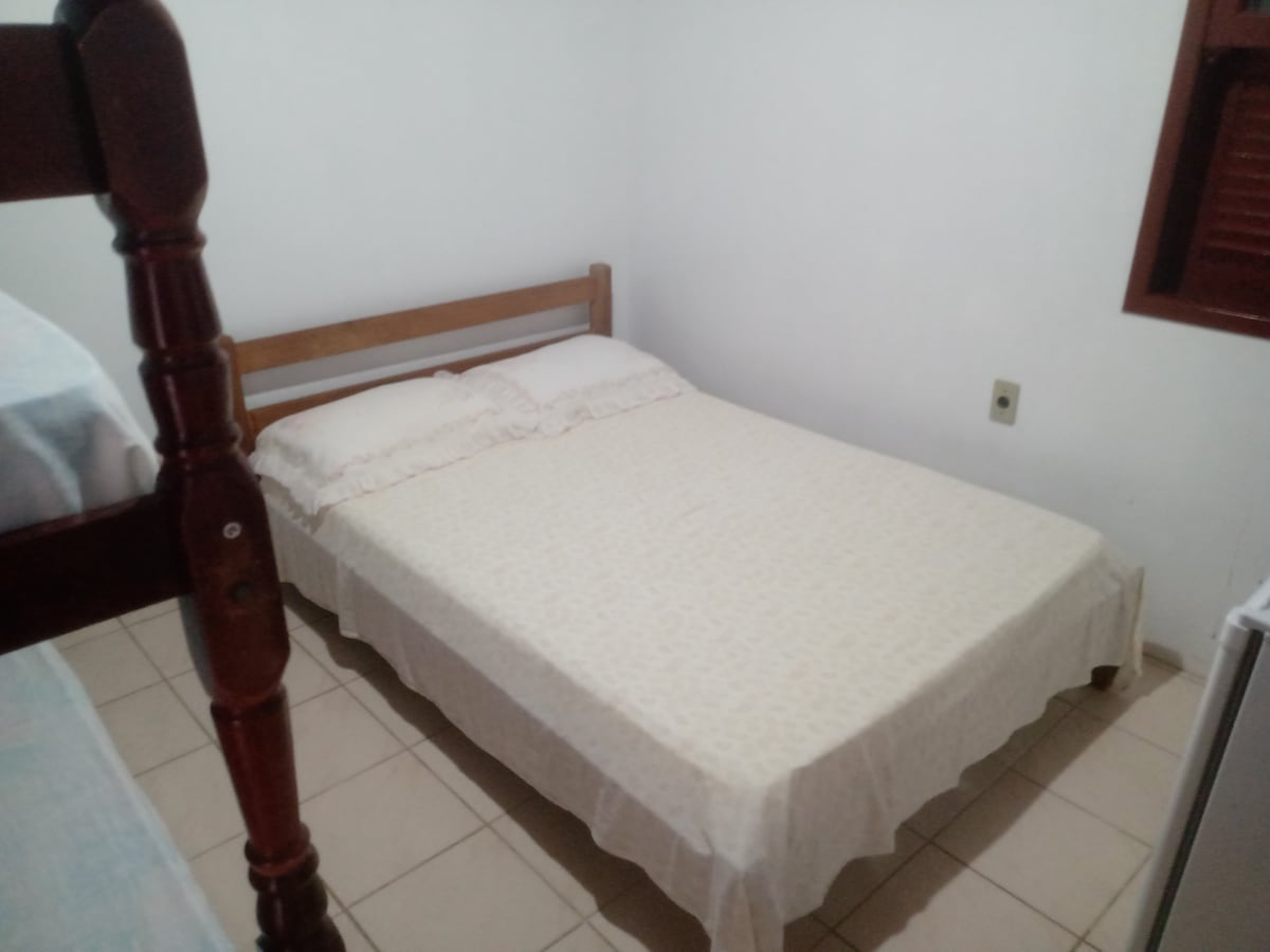 O chalé é totalmente equipado para uma estadia confortável e inesquecível: Quarto • Quarto aconchegante com sacada e vista para o pôr do sol Sala • Sofá confortável para relaxar depois da praia • Smart TV • Ar-condicionado Cozinha completa • Utensílios para preparar refeições completas Banheiro • Chuveiro com aquecimento a gás Relaxamento • Banheira de hidromassagem para momentos de descanso a dois À noite, o clima é silencioso com céu estrelado e a brisa suave vinda do mar.