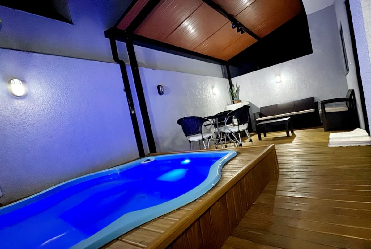 Viva dias inesquecíveis a dois em um refúgio romântico no alto da montanha, com vista deslumbrante para o mar, Praia do Moçambique, Costão do Santinho e Ilha das Aranhas. Relaxe na banheira de hidromassagem, aproveite a lareira ecológica ou a rede no deck com lago de carpas. Encante-se com visitas de tucanos, saguis e macacos-prego. Perto das praias mais famosas do norte da Ilha, perfeito para explorar e relaxar.