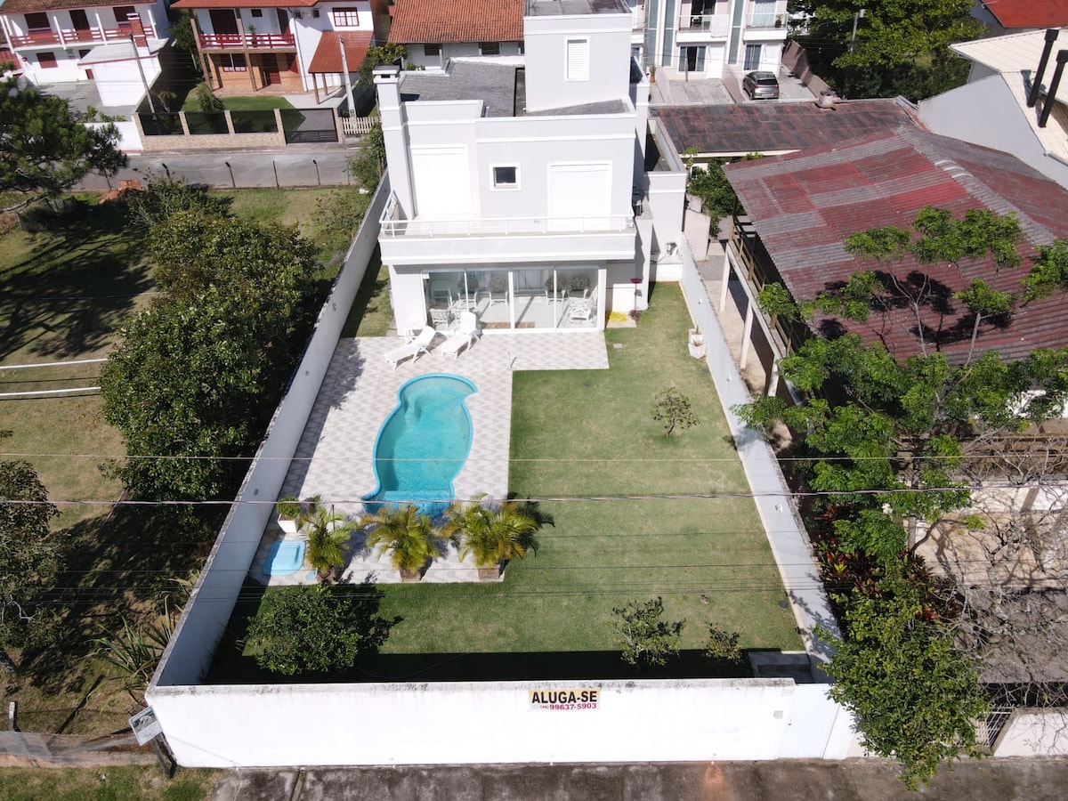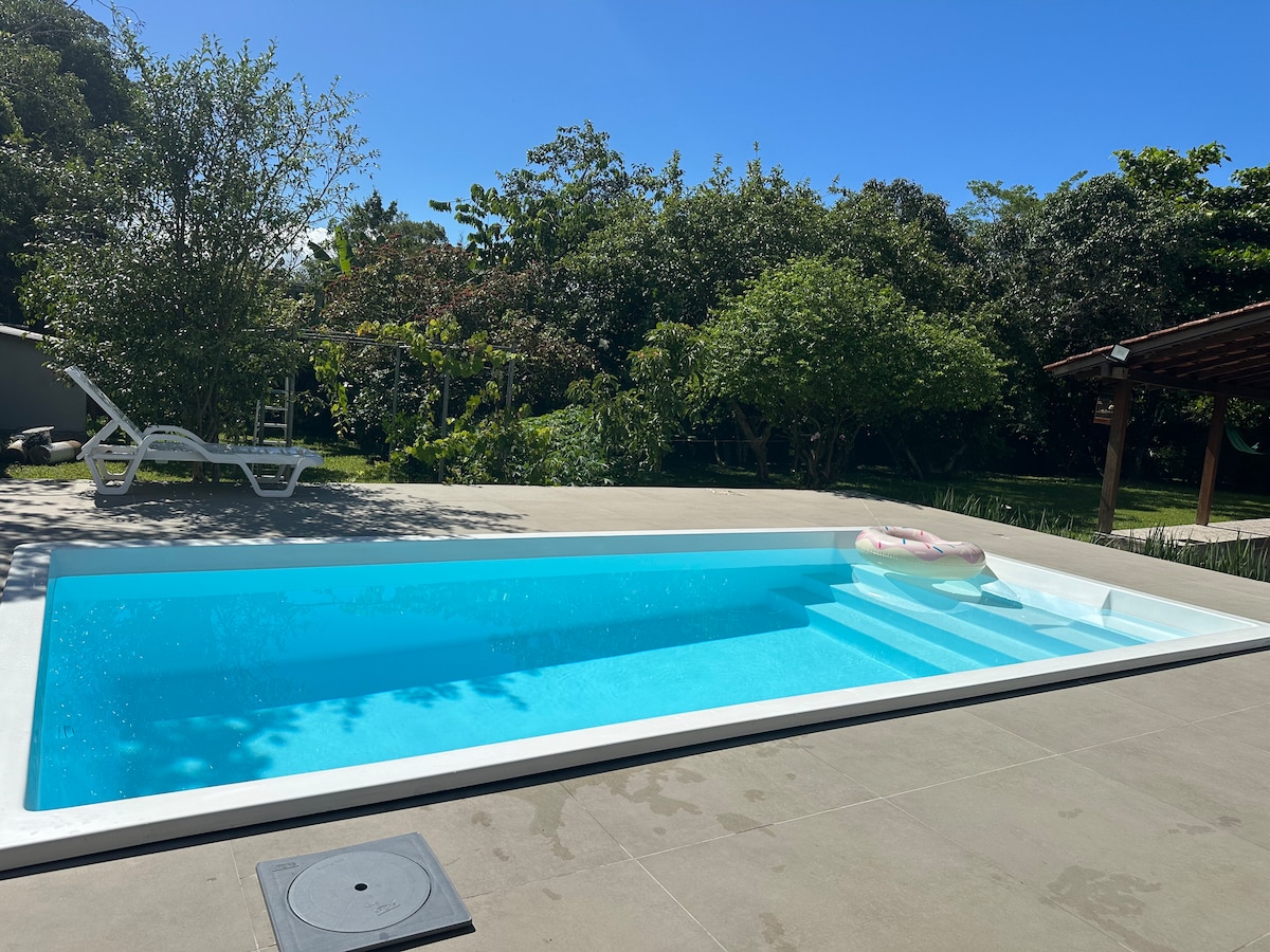 A casa com piscina possui um espaço privado espetacular. Área com gramado, piscina com ombrelone, espaço para churrasco e confraternização. Ar condicionado nos quartos. O melhor: muito perto da praia e do comércio local. voce pode conhecer um pouco mais nosso balneário acessando nossas mídias
