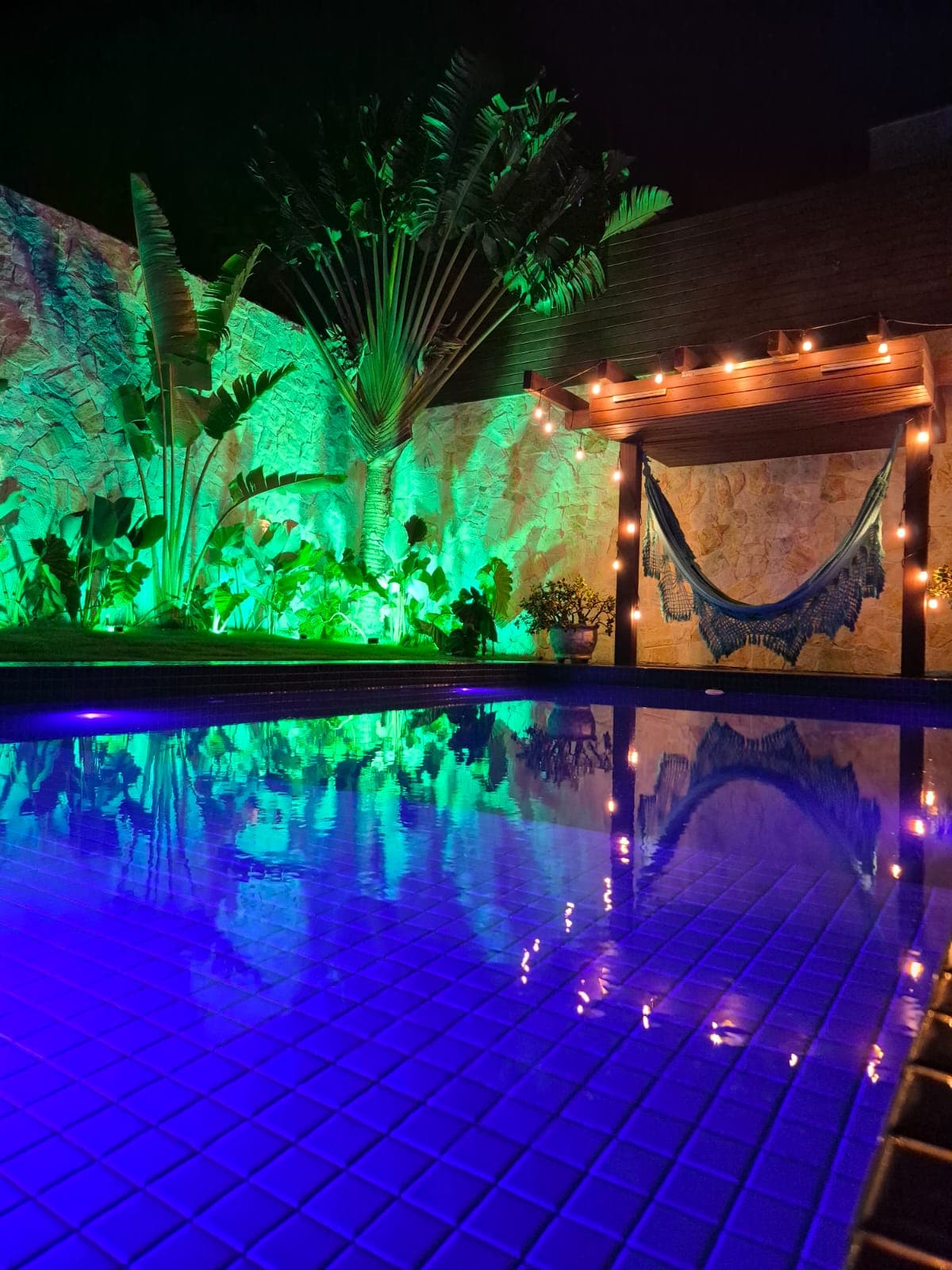 Oferecemos uma casa com piscina numa área super valorizada a 300m dos pontos mais importantes da praia, 6 minutos caminhando. São 4 quartos (2 suítes) 4 banheiros, lavabo, Ar condicionado em todos os cômodos (inclusive áreas comuns), churrasqueira, lareira, garagem para 2 carros. Amplo pátio interno ajardinado e com piscina onde se pode desfrutar verdadeiramente da vida ao ar livre. Temos experiência de mais de 15 anos em locação. Aqui todos são bem vindos.