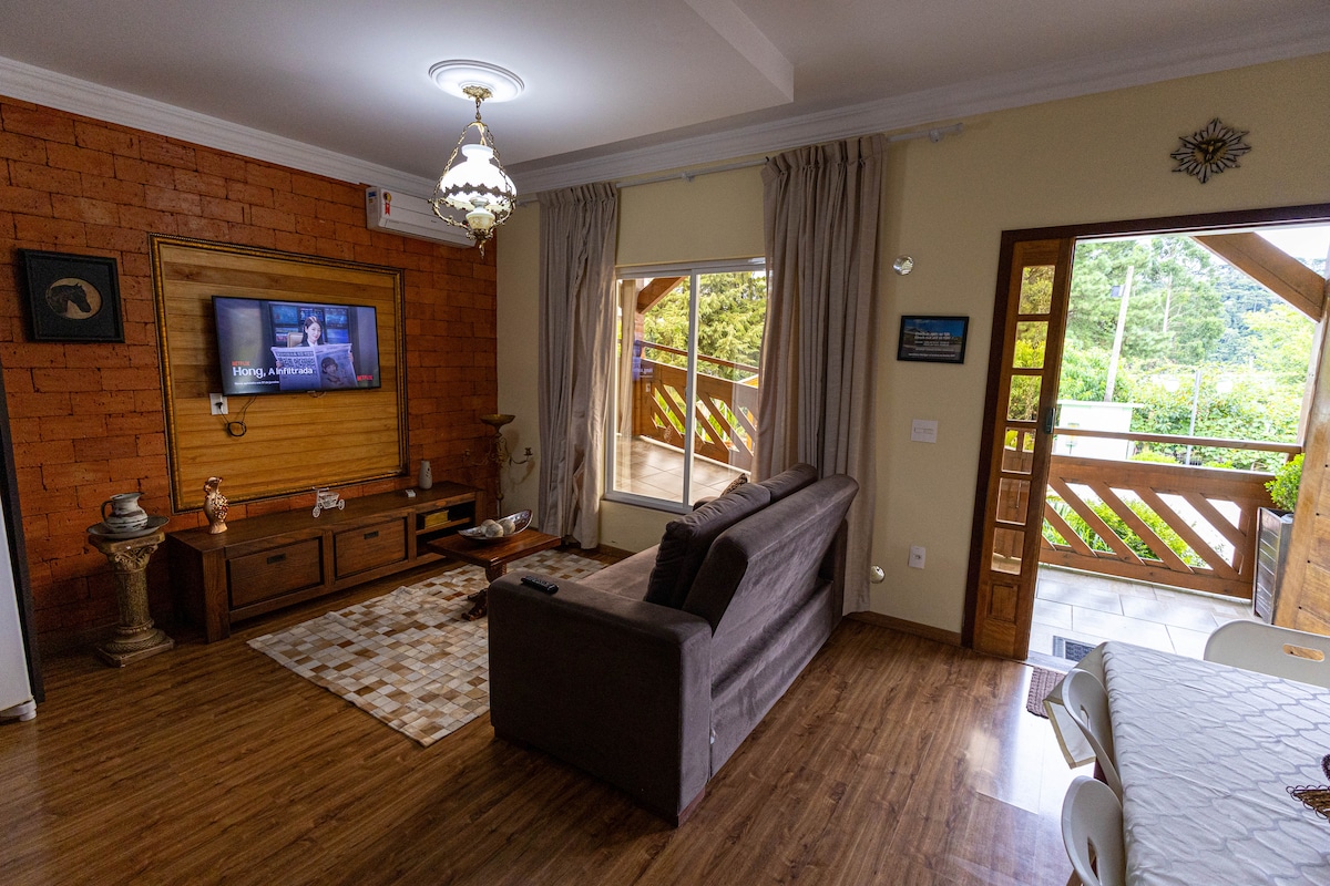 The Bora Bora studio is a complete accomodation for couples, with two stores, complete privacity and all the amenities needed for a perfect stay. Suite master with jaccuzzi pool, ar conditioned, smart TV and sea view, bathroom with central gas shower, deck with barbecue and hammock, complete kitchen, a small living and garage for your car.