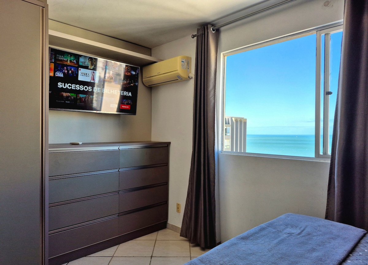 Estamos na quadra do mar, pertinho da praia e de diversas opções de comércio local. Nosso apartamento possui um quarto com cama de casal e outro quarto com cama King Size, trazendo muito mais conforto para sua estadia na cidade. Sacada iluminada, ampla e arejada, com vista pra cidade e pro mar, perfeita para momentos de descontração e descanso. A localização é perfeita pra quem busca praticidade e comodidade.