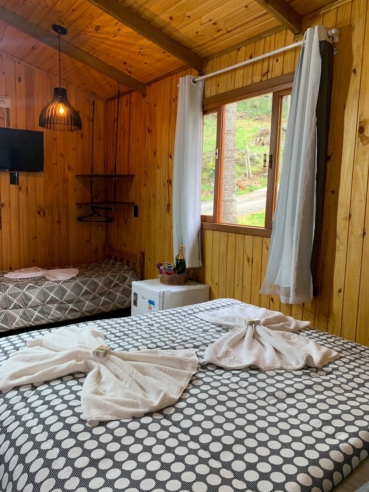 Fuja do mundo a dois em nossa cabana romântica na Serra. Um refúgio privativo com lareira dupla, cozinha equipada e banheira de hidromassagem. Totalmente automatizada pela Alexa, oferece ainda Smart TV, Wi-Fi, ar-condicionado e enxoval premium. Em meio ao silêncio e à natureza, viva momentos inesquecíveis com conforto e praticidade.