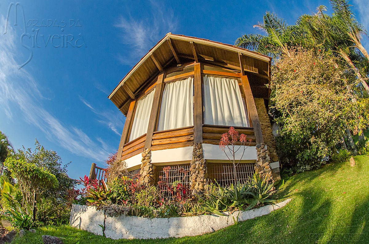 Observatório natural no alto da montanha com uma arquitetura em simbiose com a natureza. Visual deslumbrante para a Lagoa e o Mar, com nascer do sol e da lua. Fogueira para ver as estrelas. Conforto com requinte e privacidade. Rodeada pela mata atlântica, águas da cachoeira, piscina natural com água da nascente. Acesso somente via barco (Lindo trajeto pelas águas da Lagoa-ca.15 min.) ou via trilha. Check in presencial. Um paraíso espera por você!