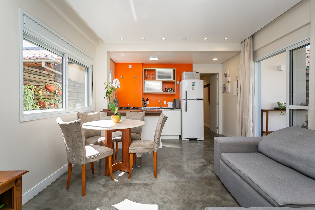 O Apartamento 2 da Casa em Movimento é independente e privativo. É um lindo espaço funcional, simples e sofisticado estilo Tiny House com um mezanino que atende você nas suas férias, em um final de semana ou até trabalhando por longos períodos. É um ótimo refúgio para descansar e relaxar que fica dentro de um terreno com outros 3 apartamentos e outra casa principal da Anfitriã, onde todos vivem em completa harmonia, inclusive os animais (somos pet friendly, entre em contato para combinar).