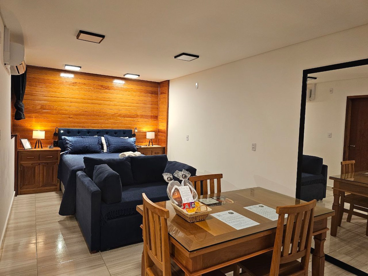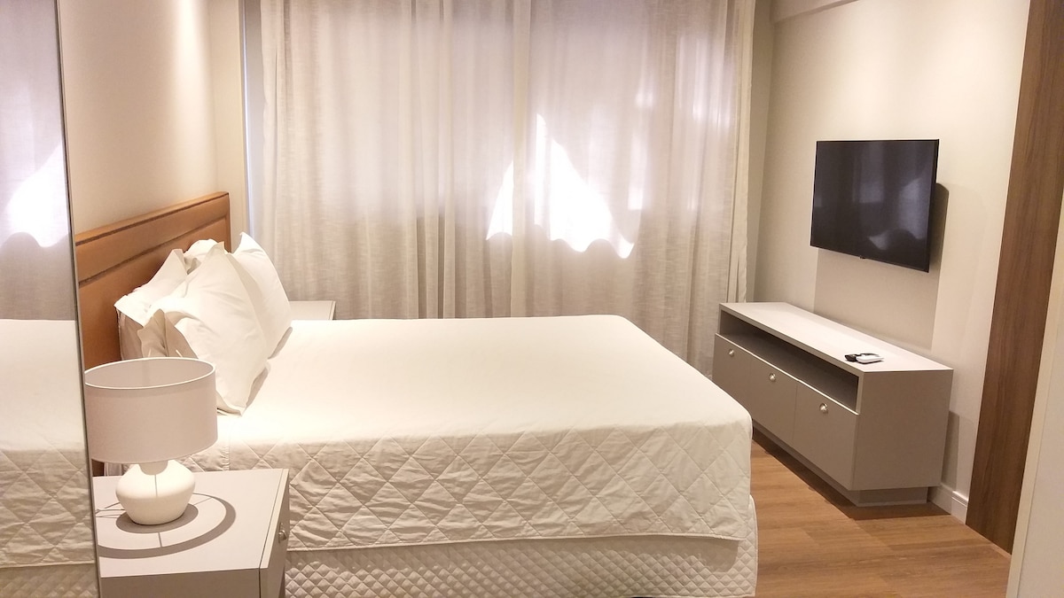 Tudo o que você quer explorar está a um passo deste lugar. Apartamento tipo hotel com banheiro privativo, TV, Ar condicionado e frigobar. - Check-in após as 15 horas - Check-out as 11 horas; - Diárias NÃO inclui café da manhã; - Proibido animais de estimação - Apartamento tipo hotel para 2 pessoas; - Recepção 24h para check in e check out; - Estacionamento NÃO está incluso na diária.