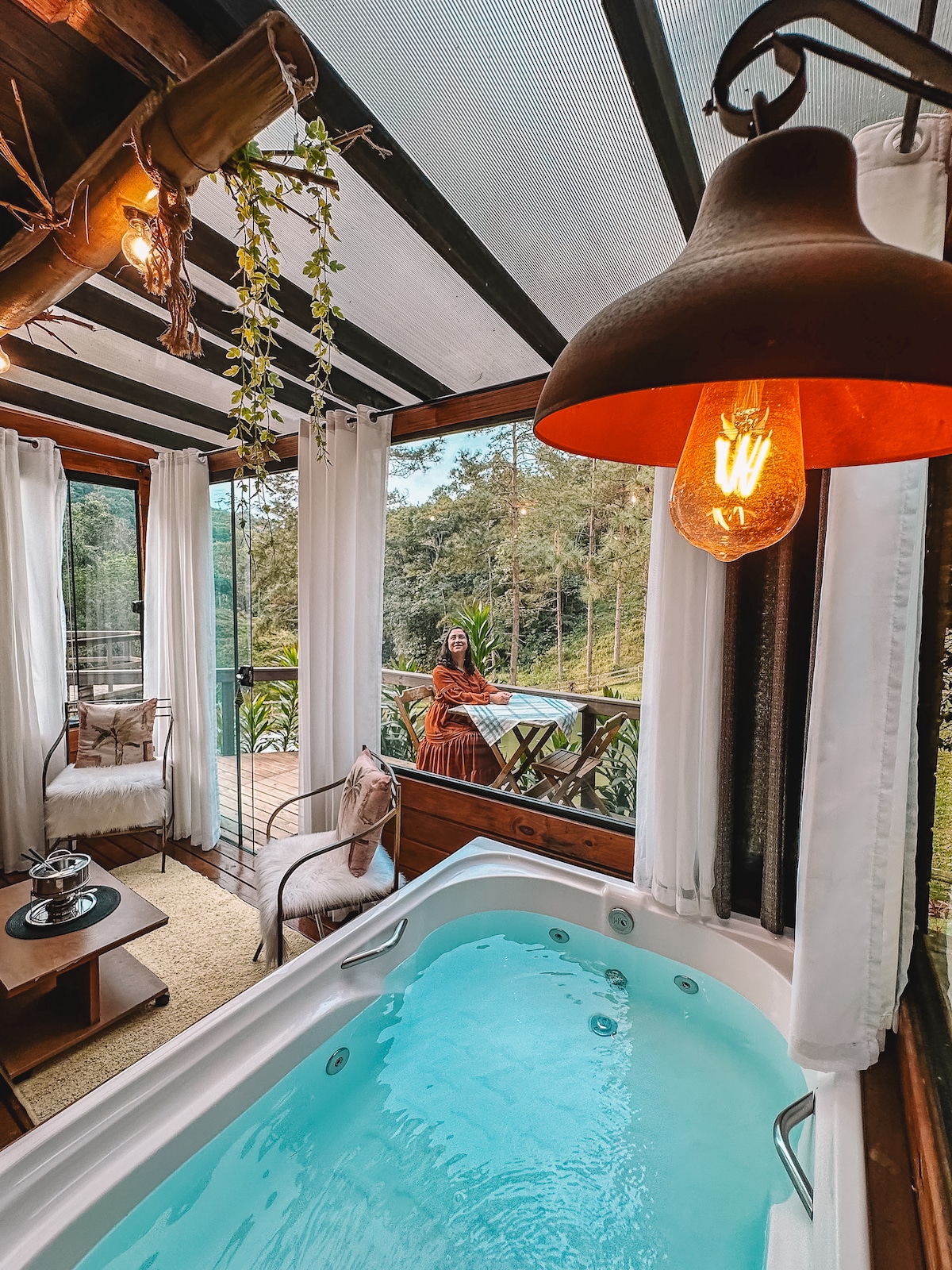 Desfrute do refúgio EXCLUSIVO E PRIVATIVO com ofurô AQUECIDO, em meio à um bosque com VISUAL espetacular do pôr-do-sol na Lagoa Encantada . As suítes possuem ar condicionado, TV e Wi-fi 600MB Ofurô aquecido e com hidromassagem. Quiosque Espaço Gourmet completo. São duas suítes, uma com uma cama de casal e a outra com duas camas de casal, não alugamos separadamente . Próximo da praia e do centrinho. Acesso à Praia por trilha ou escadaria exclusiva, um belo exercício para o corpo e alma.