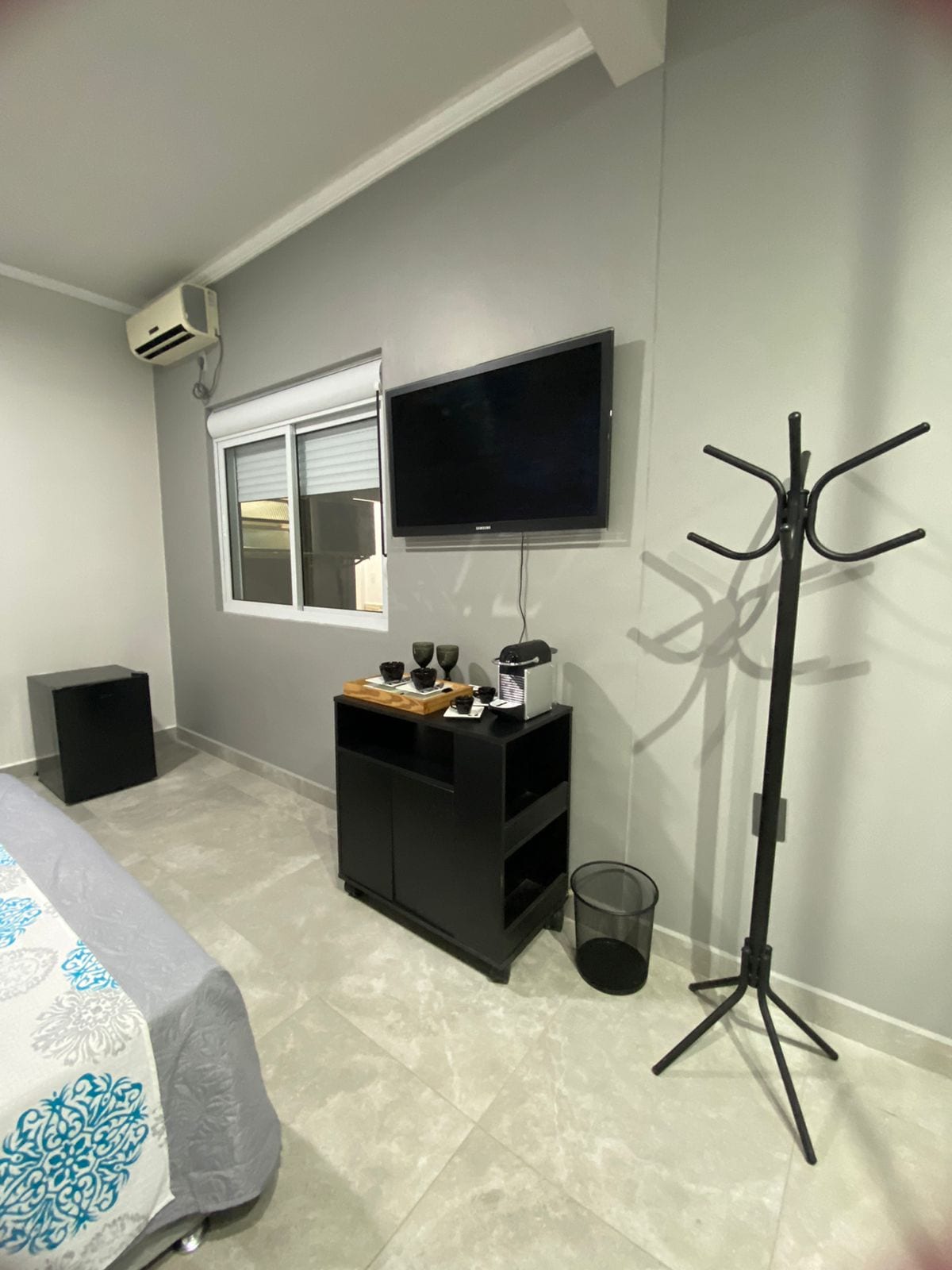 Estúdio com SELF CHECK-IN constituído por uma suíte com TV e 1 cama Queen, banheiro privativo, espaço para trabalho com excelente Wi-Fi e mini cozinha. Lavanderia, espaços de piscina, churrasqueira e varanda são compartilhados. O local é excelente para uma agradável estada e para boas noites de descanso.