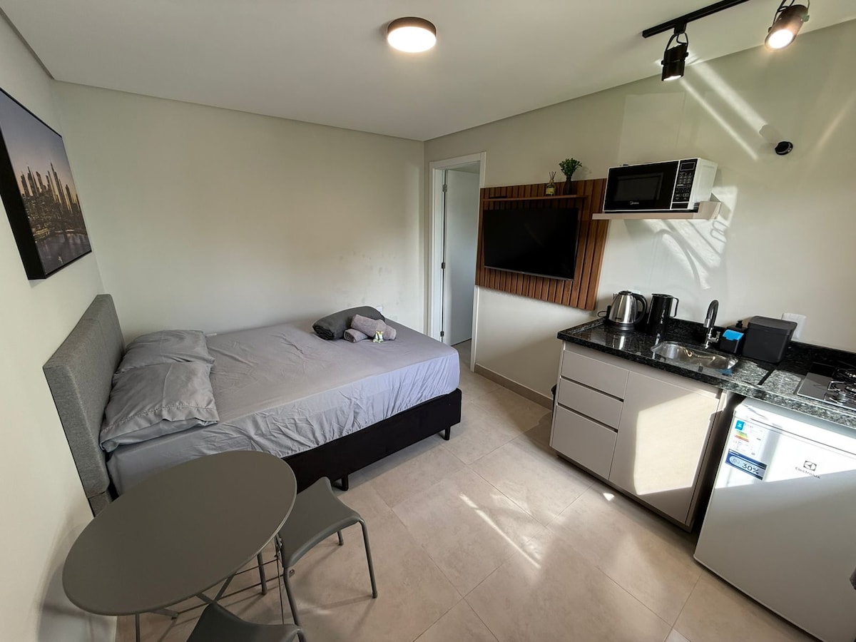 Este estúdio em Itapema é um refúgio perfeito para quem busca uma estadia confortável e funcional. Situado a apenas 200 metros da praia, oferece fácil acesso ao mar, apenas 3 min de caminhada. O ambiente é moderno e decorado com bom gosto, proporcionando um espaço aconchegante ideal tanto para relaxar quanto para trabalhar em home office. Além disso, a localização permite praticar atividades ao ar livre, como caminhadas pela orla e esportes na areia. Relaxe neste espaço cheio de estilo.