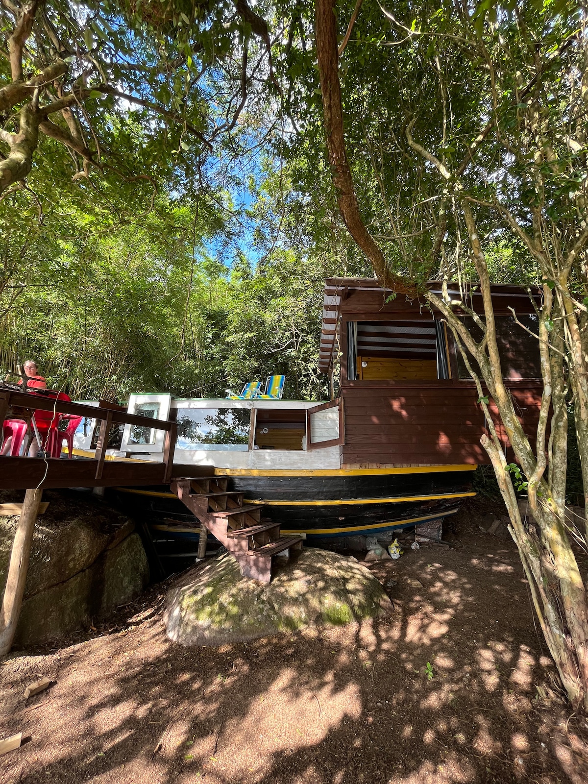 A Casa Transmar é uma hospedagem exclusiva em um barco histórico na Lagoa da Conceição, Florianópolis. O acesso é somente por barco ou trilha. A casa oferece conforto e tranquilidade e ainda você desfruta de uma prainha só para você. Vem viver essa experiência!