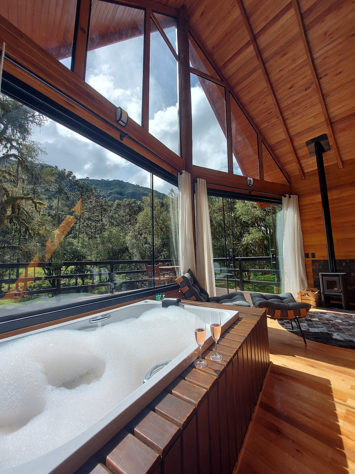 Local perfeito para quem procura um ambiente aconchegante,uma vista de tirar o fôlego e curtir um lugar com muita paz e ar puro. A hospedagem conta com uma incrível hidromassagem com cromoterapia,para você relaxar e ter momentos únicos e inesquecíveis. Possui uma lareira e fogo de chão para você se aquecer nos dias mais frios. O local conta com um balanço do infinito para você tirar fotos incríveis 😍 E pra fechar com chave de ouro ainda tem AQUELE café da manhã delicioso já incluso na diária 🤤😋