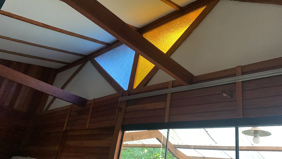 espaço pequeno e aconchegante. um chalé de madeira de lei, rústico, rodeado de árvores, há uns 6 minutos da praia, com trilha de restinga nativa, em frente a pousada hi adventure ( com restaurante, pista de skate.. )