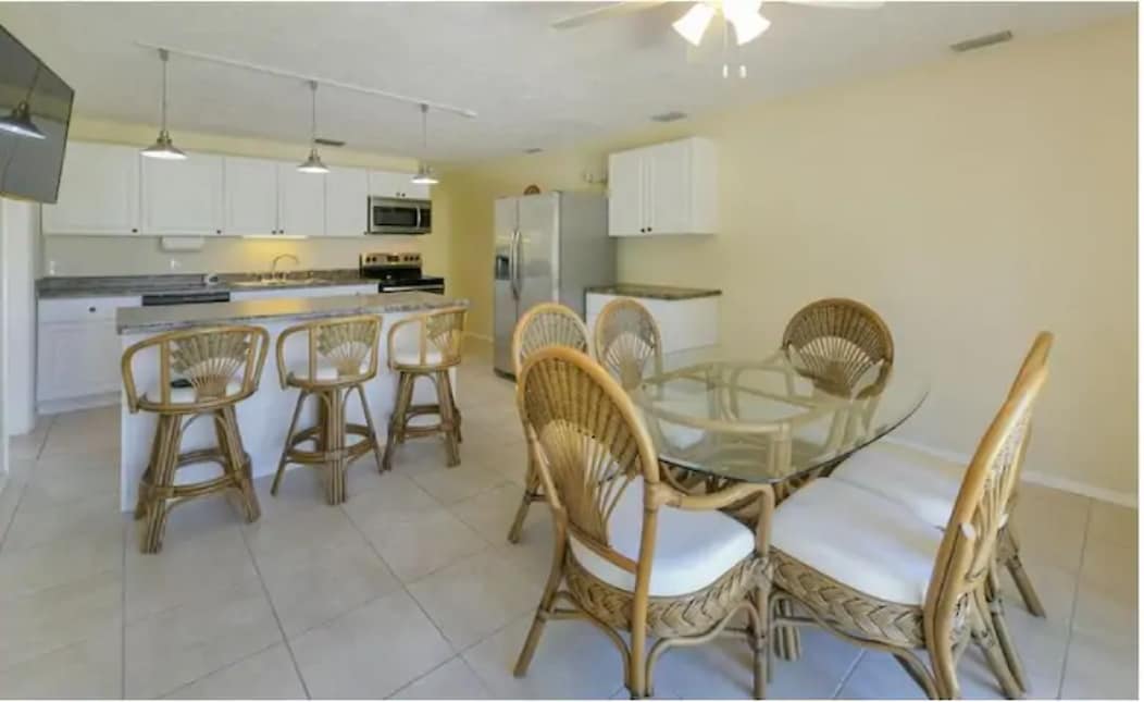 This remodeled 3BR/2.5BA villa is pure paradise. Recent updates include a fully renovated second bathroom, as well as upgrades to the living room and kitchen. Just steps away, your private dock fits up to 35' (max 3' draft, boaters insurance required). The villa features a fully stocked kitchen, TVs in every room, and resort grills for your fresh catch. Sleeps up to 8 (fee for 7+). Note: Minimum weekly rental. All bedrooms and full baths are located upstairs and involve stairs.