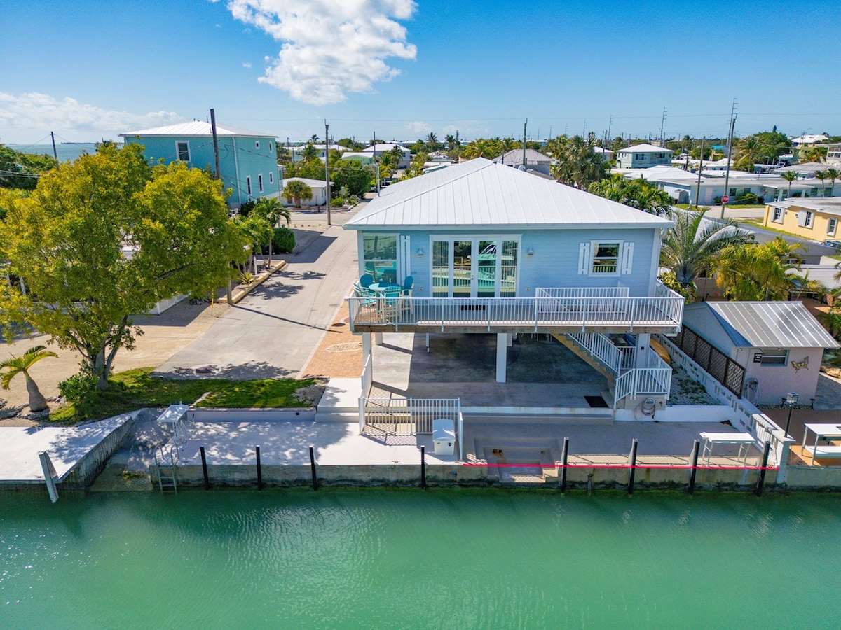 Blue Shell is a delightful new canal front vacation home with a pool, just a minute to the ocean and open water and lots of fun amenities! It is also about 10 minutes from both Coco Plum Beach and Sombrero Beach. The dock is 50' and there is parking on the side of the house for truck and trailer. Additional parking under and in front of the house, but not parking in the street please. Two vehicles recommended. Three max.
