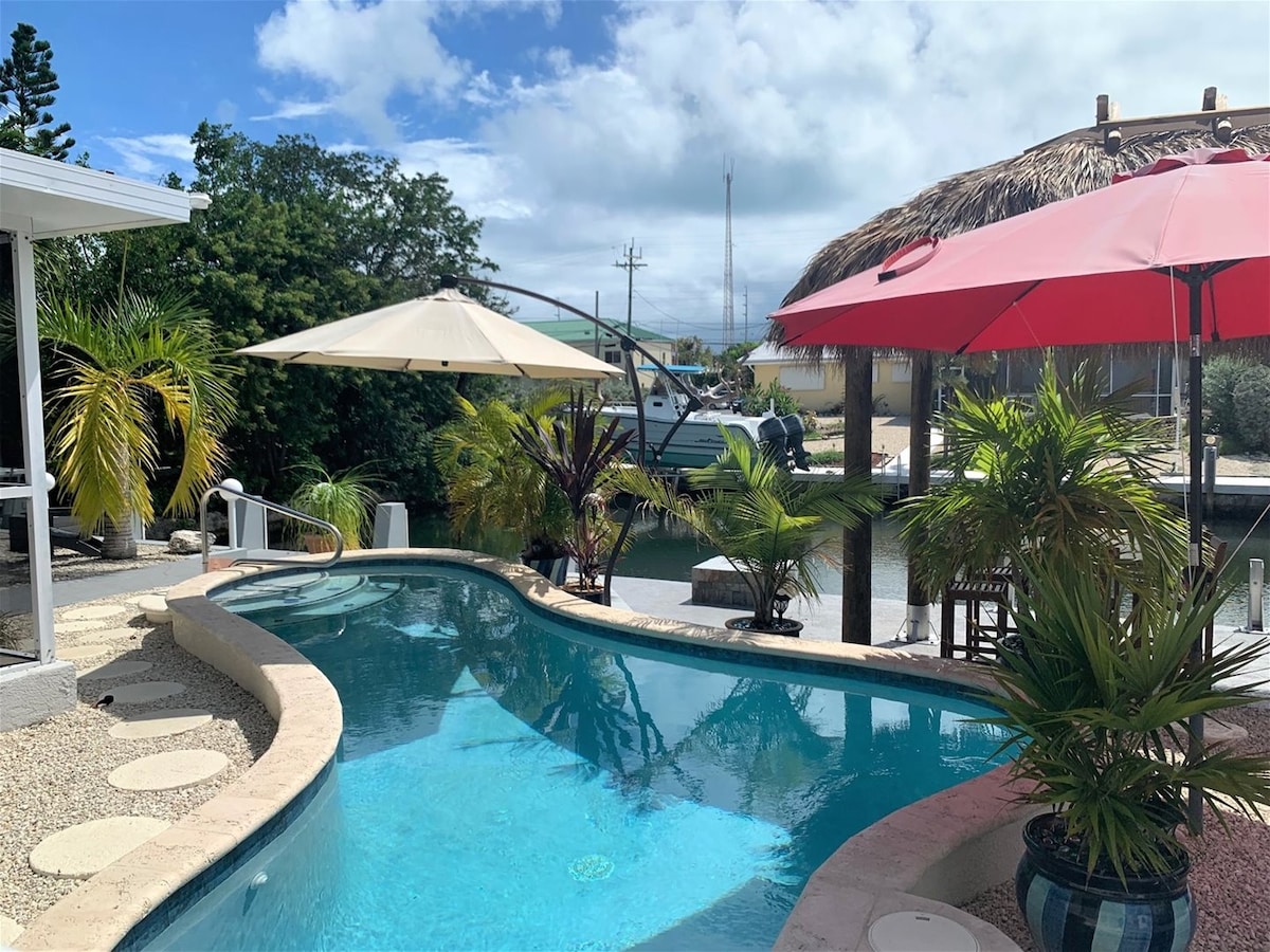 This Coco Plum home is the ultimate family getaway! With four bedrooms, two bathrooms, a modern living room with a 4K TV and surround sound, and an outdoor area that includes a fire pit, outdoor dining, and outdoor living space. The boat dock and breathtaking sunset views make this the perfect home for your fishing adventures. Beautiful Coco Plum beach is just a ten minute walk away. Make this home your next island adventure.
