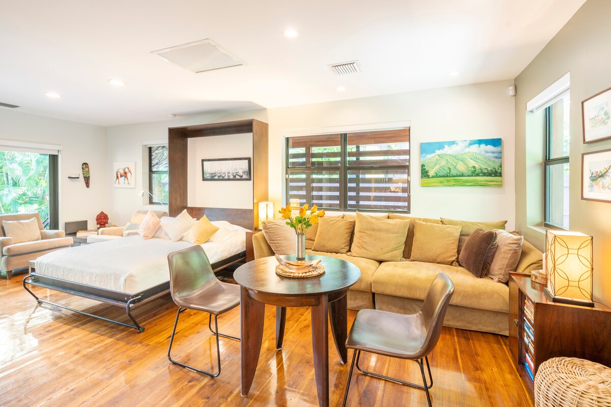 Experience natural luxury at this boutique cottage in the heart of Coconut Grove — a private tropical retreat surrounded by lush palms and vibrant gardens. Walk to the Marina, cafés, bayfront parks & CocoWalk. Perfect for couples or solo travelers, it offers a full kitchen, washer/dryer, free gated parking & a spacious deck with string lights. A top-rated, stand-alone escape near UM — your serene, central Miami hideaway for relaxation & connection.