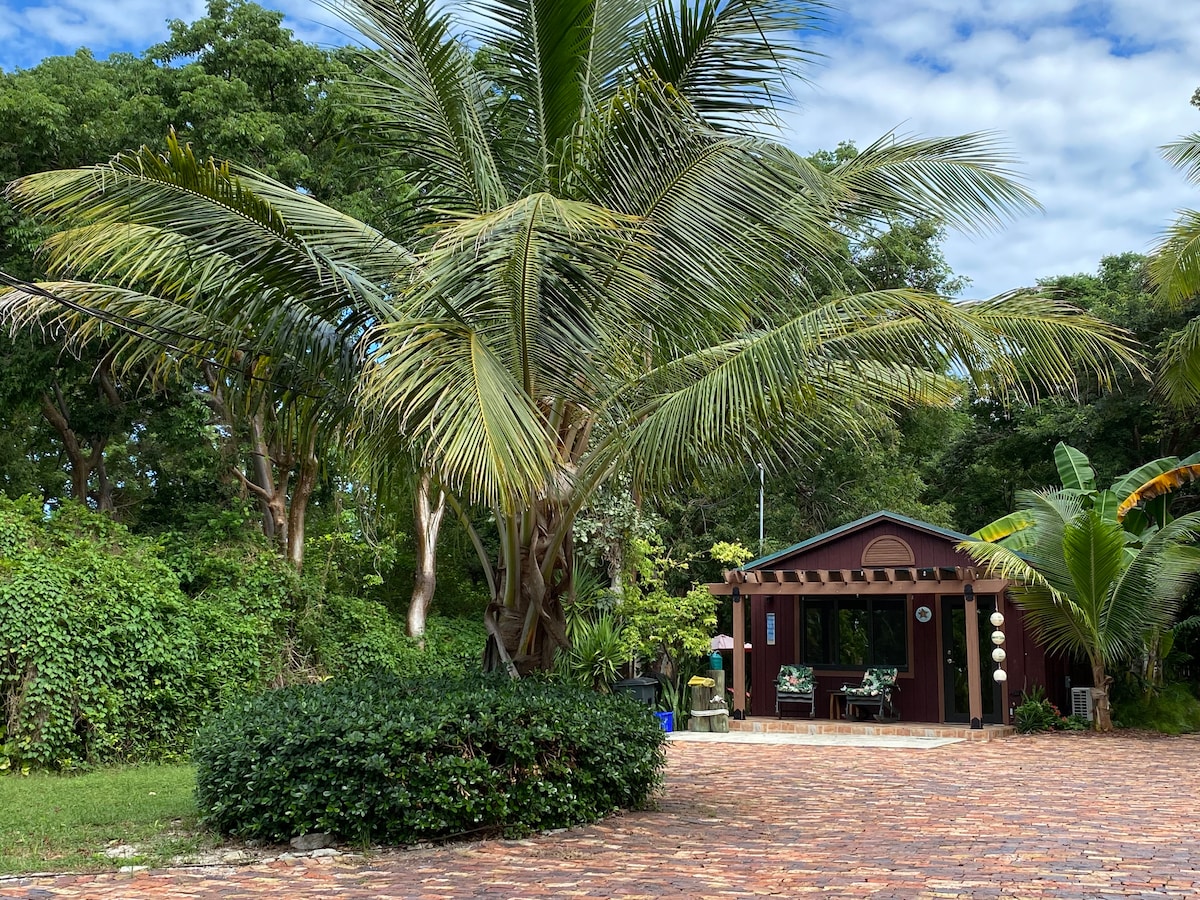 Private Romantic Bayside Cabin/Guesthouse, peaceful settings, lovely sunsets, beach, fishing pier, lush gardens surrounded by nature and wildlife, birds, iguanas, manatees, dolphin’s, eagles, the beach is just a short walk away from the Guesthouse enjoying a cocktail, fishing, boats cruising by, kayaking, snorkeling or an amazing sunset. *This Guesthouse is on bayside not Bayfront ! Same property but private from the residence! "No pets, Airbnb-granted pets Exemption cus allergies reasons"