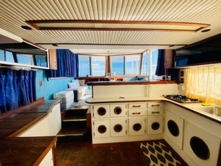 Stay aboard the eco-friendly two-story 63 ft River Queen with a 360 degree view with beautiful sunrises and sets, mored 1/8 mi offshore in a quite harbor close to shopping center, movie theater, hospital, bars & restaurants. A 10-foot dinghy with small outboard to come & go from shore "ONLY", nowhere else. I also offer Personal Training, deep tissue work & Life Coach sessions. I live on the vessel about a hundred yards from you so if there are any questions, etc. I will be there to assist you.