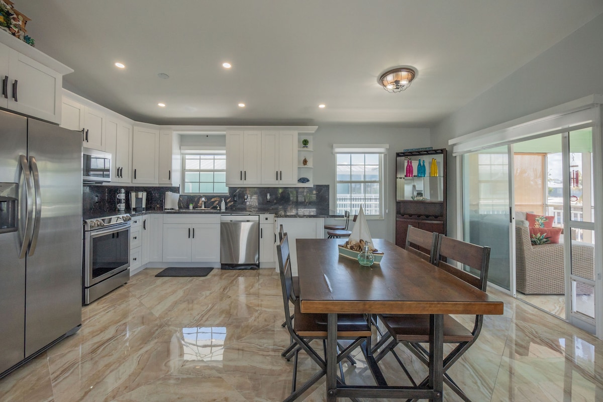Large Waterfront home completely renovated in gated upscale community. 2/2 upstairs and complete 1/1 efficiency downstairs. Highest Airbnb Rating in the area. Only 12 houses away from the Bay and near many restaurants and attractions. BRAND NEW POOL along with new GAZEBO and BBQ area (Not shown it some pictures). Enjoy sunset cruises, island hopping and dock-side dining. 60' of waterfront, large dock and 2 kayaks available. pontoon rental available for Bayside only. Must be 25 or older.