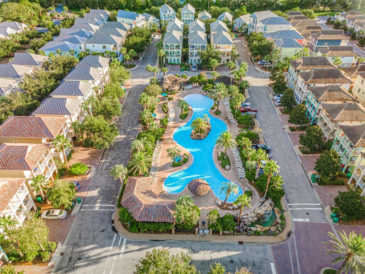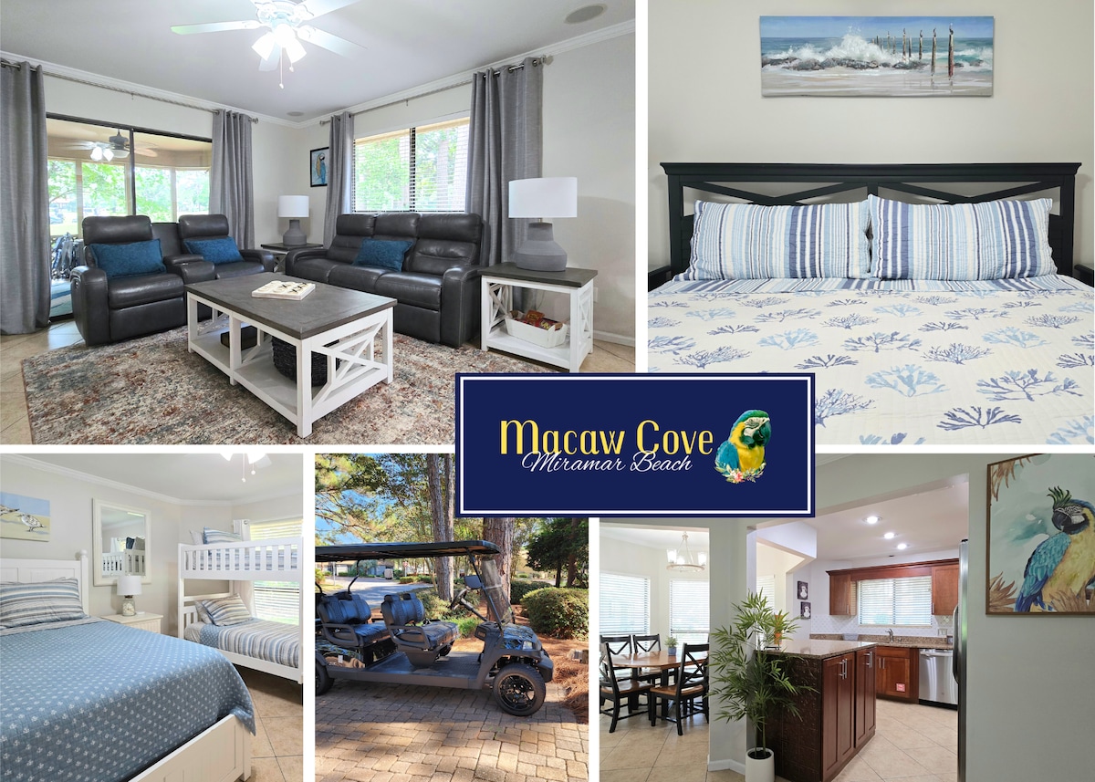 Sandestin Resort open-concept bright & wide single story duplex condo perfect for 4-6 adults and/or families...will sleep 8 w/sofa sleeper and 1 set of bunkies. Please note 2nd BR has 2 twin EXTRA LONG (80"/same as king) beds with private entrance to 2nd BA. Kitchen has granite and stainless steel appliances. Refrigerator has filtered water which tastes great. Golf cart seats 6 or fold down back seat to cart chairs to beach in provided tub. Condo located in secure area...tons of amenities.
