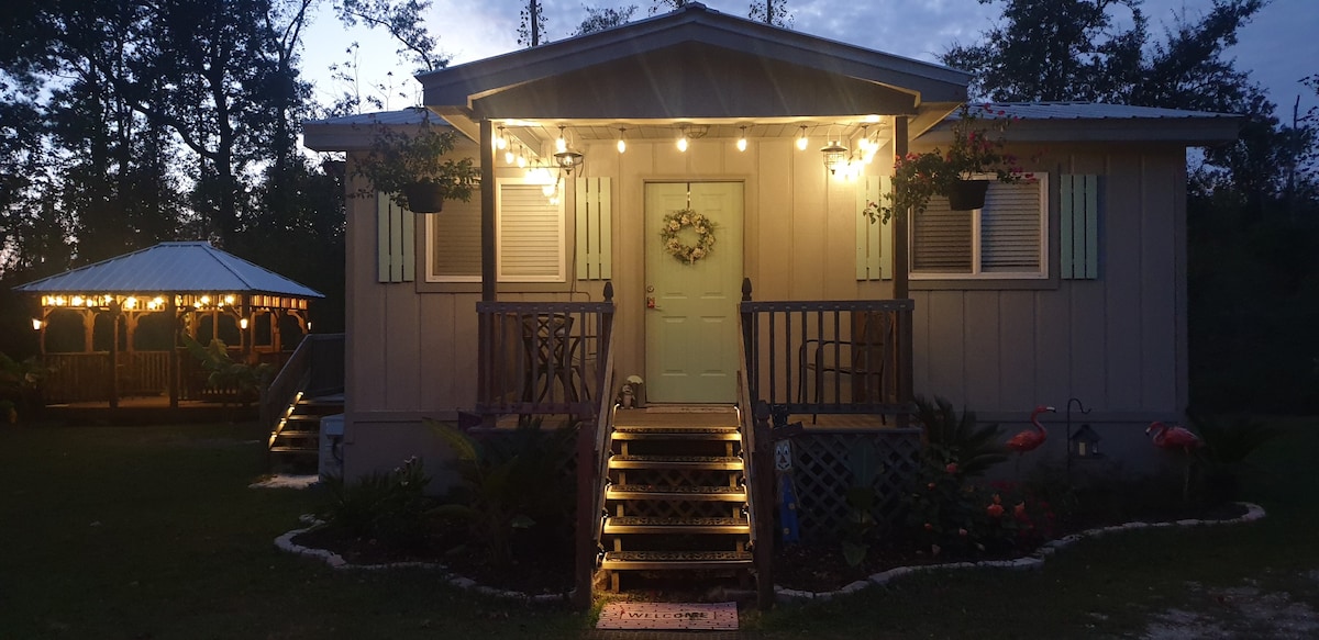 You will love this super cute and cozy cottage. All the amenities you will need to fully enjoy your stay. outdoor gazebo with fireplace, and more. Centrally located just minutes from the bay with boat launch, mini beach and picnic area. Plenty of restaurants and shopping nearby as well. Beautiful Panama City Beach is a mere 20 minutes away . Come and enjoy a fun and relaxing time as our guests at "Pace e Amore.