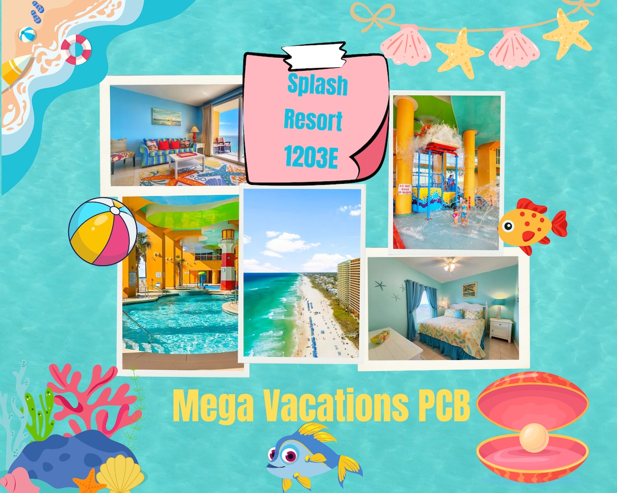 Splash Resort is Unique & The Best Family Beachfront Resort in PCB, FL. Complementary Aqua Park, Heated pools, Lazy River, Hot Tub, Gym Beach services, & more come with our condo! Our 1203E unit is 1BD/2BA (6 sleeps). We have a Beachfront living room! Big TV+cozy Fireplace! FREE Wifi, Crib, and Beach Toys. The condo includes a KING-size bed, a twin bunk bed, a queen-size sleeping sofa, a fully equipped kitchen & more! The entire family can enjoy amazing views from the Direct Oceanfront balcony!