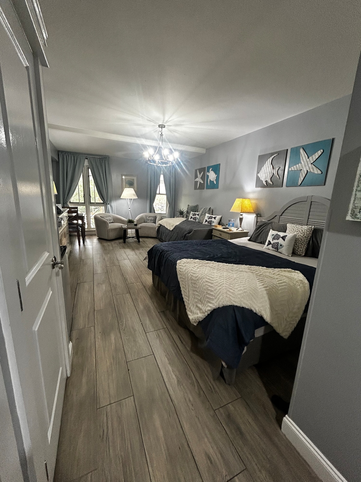 Fully furnished second floor condo located in The Grand Sandestin. Beautifully updated, fresh coastal decor & furnishings. King size bed, daybed & trundle accommodate extra guests. Private bathroom. Kitchenette offers a mini fridge, microwave, toaster, Keurig. The resort features multiple pools, spa, fitness room, private beach access, on-site shopping. Baytowne Wharf is located just steps from your back door- something for everyone! No detail is overlooked in this charming place.