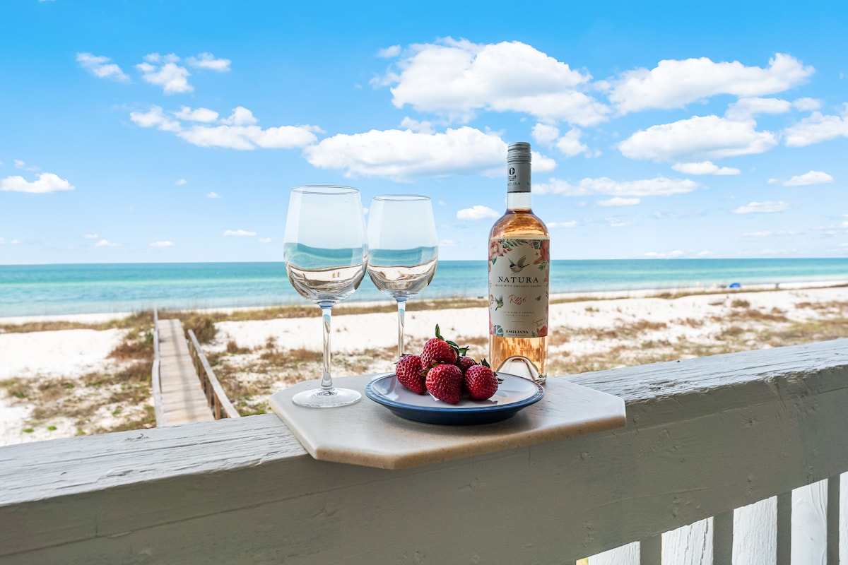 Quiet beachfront townhouse in residential area of the "Forgotten Coast." Wonderful screened porch overlooking the beach and ocean. Additional deck with chaise lounge for sunbathing. Watch the dolphins, seabirds and horses meander by. Sit under an umbrella with your favorite book or take a leisurely stroll down the beach collecting sea shells. If you want a quiet relaxing place to unwind, this is the place for you. Area famous for fishing, local oysters and fresh seafood.