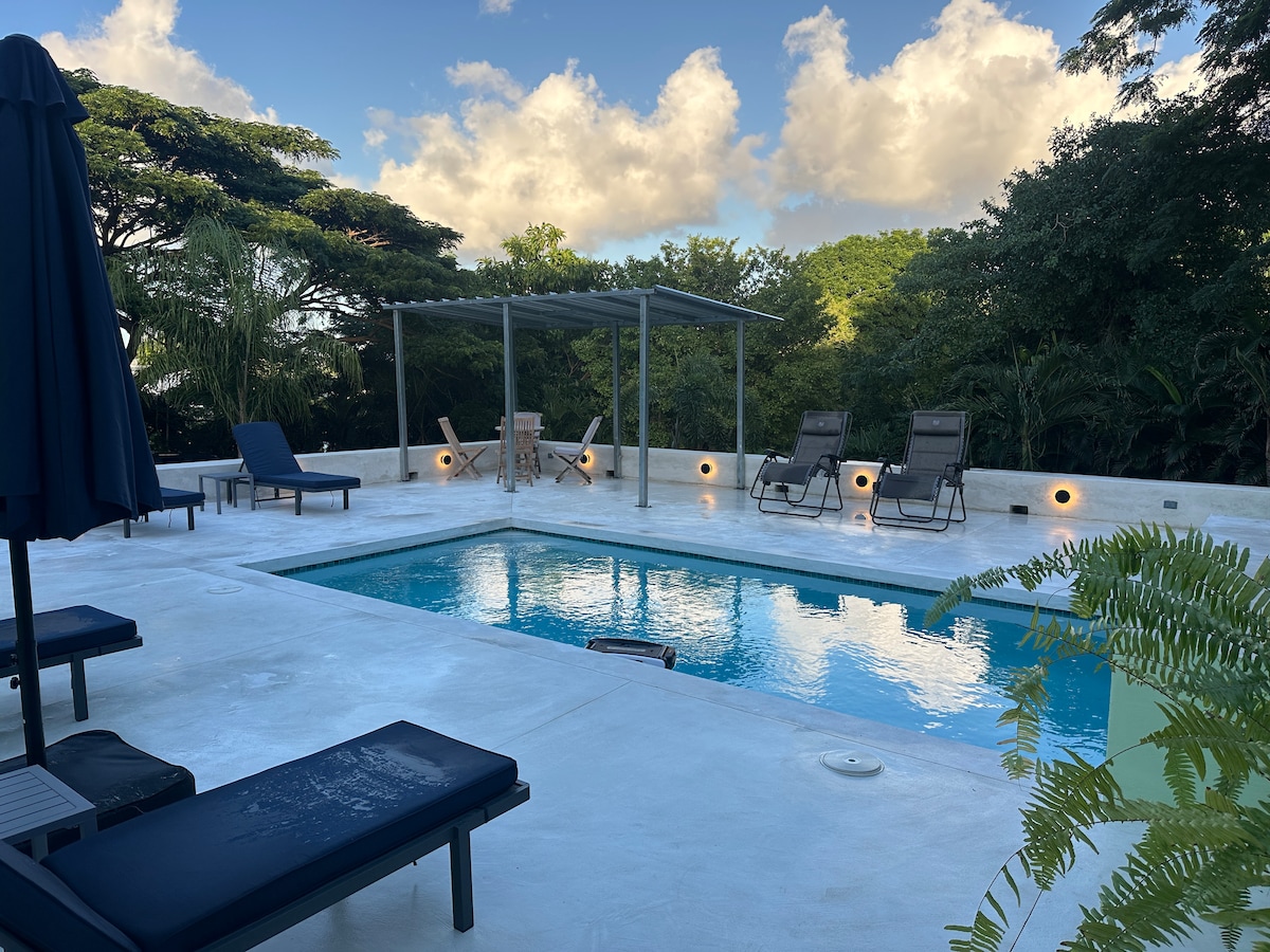 Casa Amor in Esperanza hills is a dream escape. A case of privacy, offering two fully separate suites, an outdoor dinning area with views of the of the ocean, saltwater pool, and BBQ. Breezes are free! A lovely outdoor shower for a rinse under the stars, a hammock for lazy afternoons… From the pool and gardens, you’ll find ocean views. (Clothing optional) It’s private and peaceful! Tucked into a safe locals’ neighborhood, three blocks from the nearest beach.