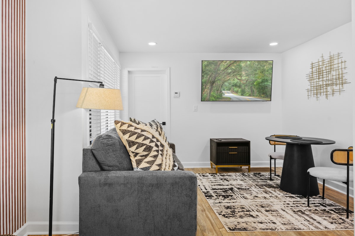 • Fully stocked kitchen! • Hi speed WiFi + Desk • Smart TV's in every room • Nespresso + Keurig w/ pods • Washer + Dryer • Safe, quiet Neighborhood in Old Town/Midtown. Join the locals for dog walking, jogging, or casual strolling while taking in the beautiful historic homes of Old town/Midtown! Situated along canopy tree lined streets. The atmosphere here is serene, welcoming, peaceful and quiet. Fully stocked spacious kitchen has everything for those who prefer to dine in.