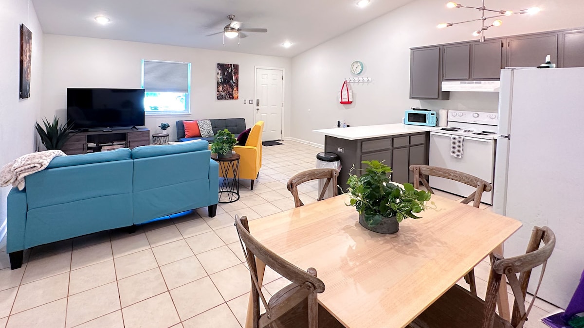 A short 2 mile drive from I-10 for those traveling you can unwind at this garage-loft with private entrance surrounded by trees with a backyard oasis. ✨ Step inside to a modern main room with canopy bed and well-equipped kitchen. Find your haven in comfy bedrooms and soak up the sunshine on the expansive deck☀️ Splash in the sparkling pool, have water gun fights in the yard and have dinner in the poolside pergola! Minutes from downtown, museums, and natural attractions.