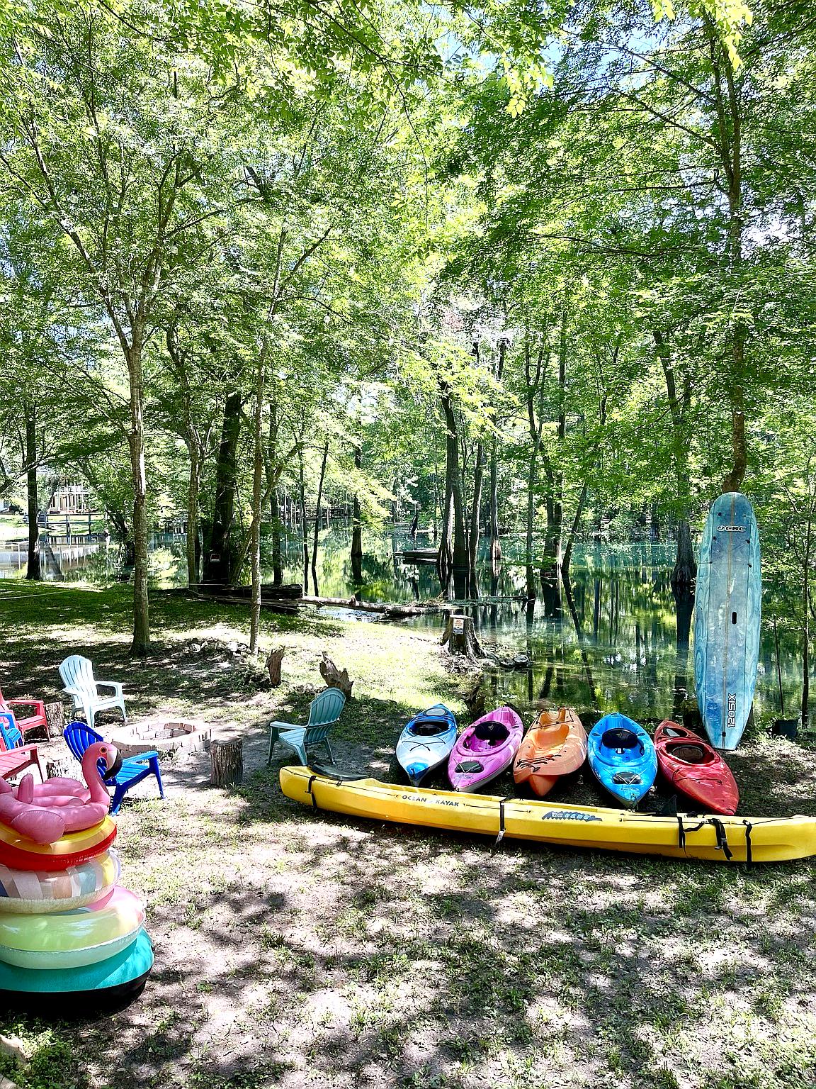 DIRECTLY ON the crystal clear waters of the Ichetucknee River, the Riverfront Retreat is a beautiful rustic home and the perfect place to find peace, rest & relaxation. Swim or go tubing on what US Travel News deemed as Florida's best tubing river. This 4 bedroom, 2 bathroom stilt-home w/ room for up to 9, has ping pong & foosball and is perfect for almost any group. We offer tubes & kayaks for guests to use during their stay. After 5 guests, $25 per person, per day.