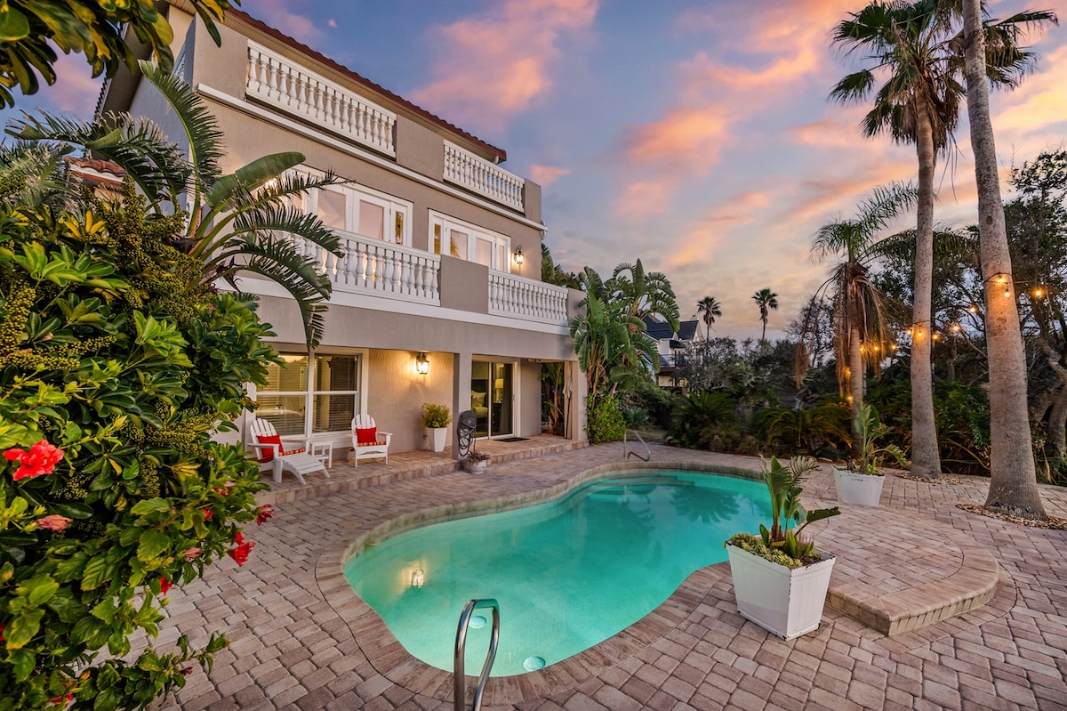 Welcome to your own private retreat! Paradise! Located directly across the street from famous Cocoa Beach on a very quiet street. This updated house is newly equipped with a beautiful pool and spillover spa surrounded by a tropical landscape. Everything from luxurious bath towels and linens to a Weber grill. Large smart TVs throughout including a large second living room with sliding doors out to the pool deck. Within walking distance to the Cocoa Beach pier and popular restaurants.