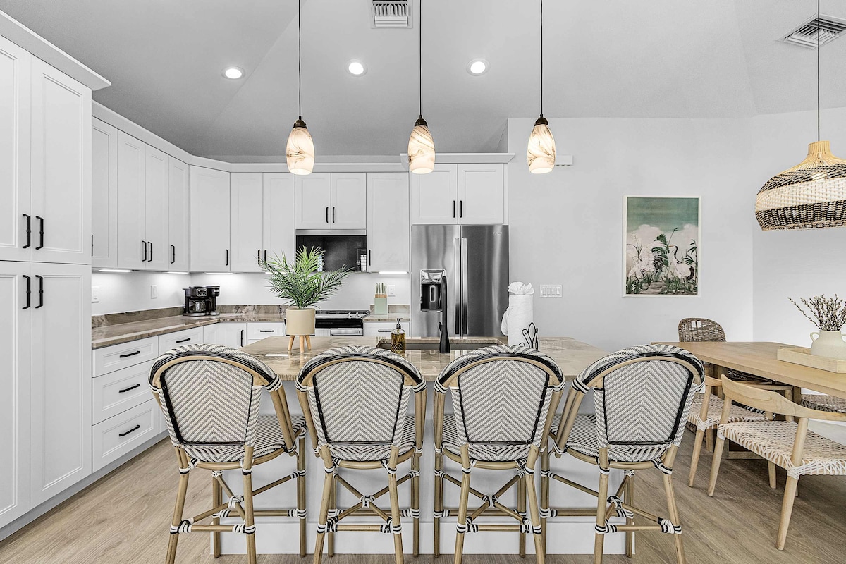 Our beaches remain beautiful in spite of hurricanes! Our fully remodeled 3-story home offers stunning ocean views from the large, open kitchen, living room and all bedrooms. This well-furnished 5BR/5BA home includes a gourmet kitchen, ample supplies, SONOS sound system, games, beach toys & 2 king beds. Bring grandma with you & convert the 1st floor den into a private room for her (creating a 6BR), w/ an accessible bathroom. Our reviews tell a story of quality, cleanliness and hospitality!