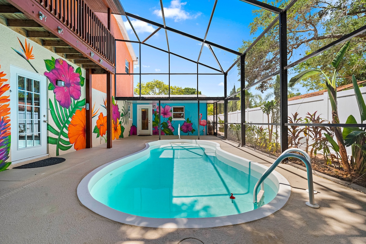 So close to St Pete Beach (8 min), downtown St Pete (10 min) & Gulfport (4 min) make this a great home base for your Florida stay! Discover the true magic of St Pete from this exceptional vacation rental, designed for ultimate relaxation and fun. With a complimentary heated pool, abundant amenities, and room for everyone, your perfect Florida vacation starts here. Dog and cat fur family members welcome :)
