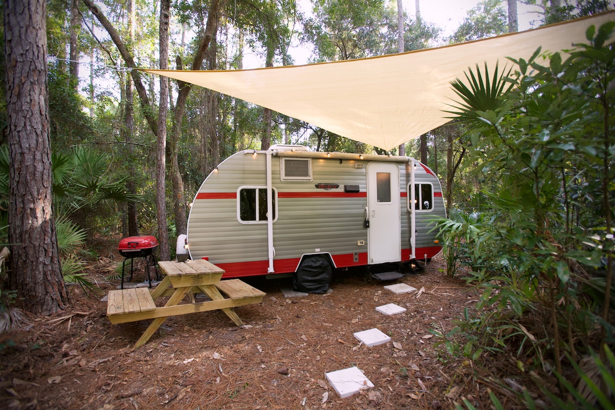 Priscilla’s Hideaway is your perfect, peaceful, glamping getaway. Luxury camping with retro style! Tucked away in a beautiful Florida pine forest, Priscilla’s Hideaway is the best place to enjoy the Nations Oldest city, while still enjoying the peace and tranquility of Florida’s natural beauty.