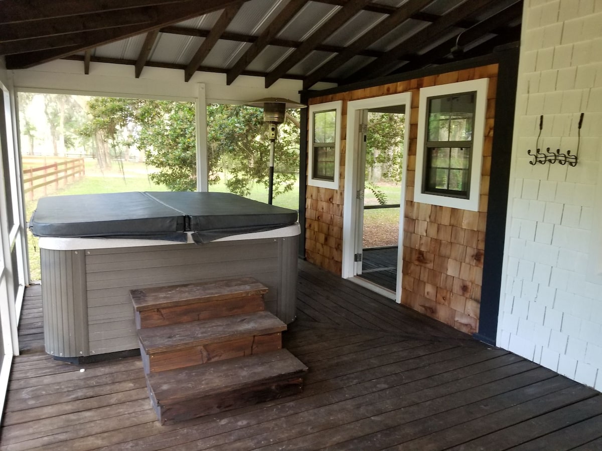 Take it easy at this unique and tranquil getaway. A beautifully appointed bed and bath in a separate building from the house. We have goats, donkeys and chickens and a Highland cow, all super friendly. Sit and relax on your private, beautiful lanai or any of our farm tables placed around the property. Join us as we feed the animals. Or even join in one of our Goat Yoga classes! We're easily located close to I-75, airports, shopping, beaches, downtown. Perfect for couples or solo travelers.
