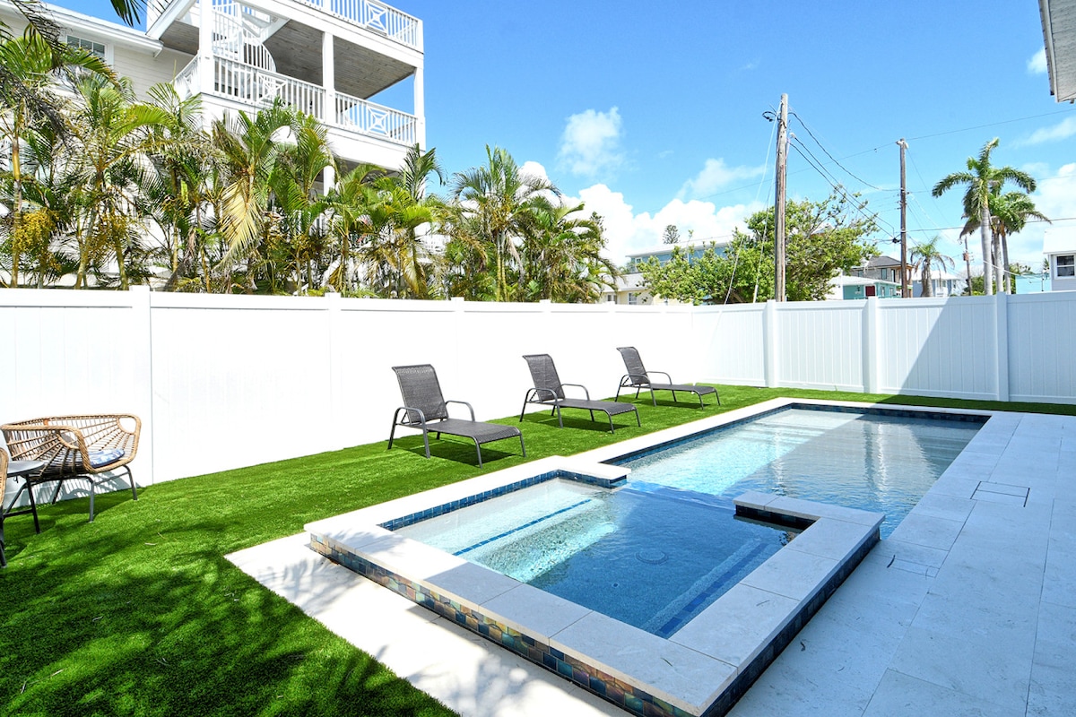 Loggerhead 🐢 - Escape to your island oasis on Anna Maria Island — just a 4-minute walk to the beach! 🏝️ Unwind in your private heated pool, sip sunset drinks at the Tipsy Turtle bar, and cruise the island in your included 6-person golf cart. Perfect for families or couples seeking the ultimate beach getaway filled with sun, relaxation, and island charm.
