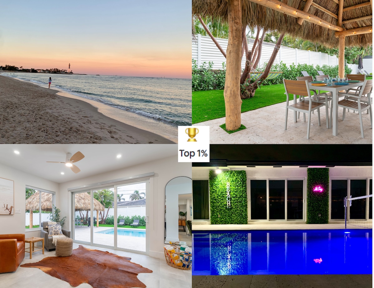 步行1分钟即可抵达海滩,带加热泳池、提基小屋、烤架