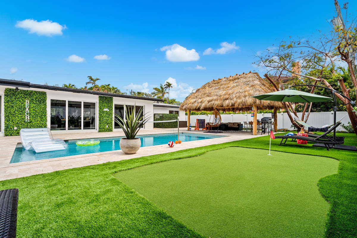 #1 BACHELOR / BACHELORETTE DESTINATION IN FORT LAUDERDALE !!! Also ideal for families:) Tiki Las Olas is a Multi Million dollar luxury Air BNB right on Las Olas Blvd! House (not a townhome) Tiki Bar overlooking a blue lagoon splash pool. Selfie wall with machine. Six foot concrete privacy wall with a secure gate. Polynesian movie theater with high end seating. Custom Tiki twin beds (6) in the theater room. Elevator. Steam Room. Hot Tub