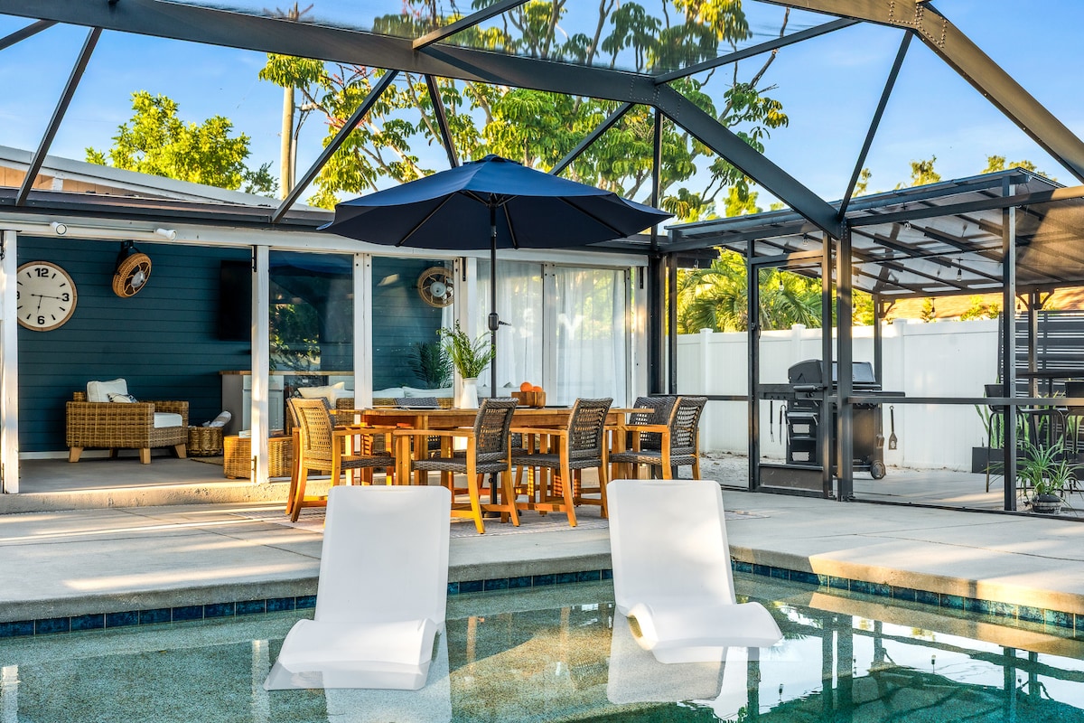 海岸豪华房源,盐水泳池/热水疗,距离Siesta 5英里