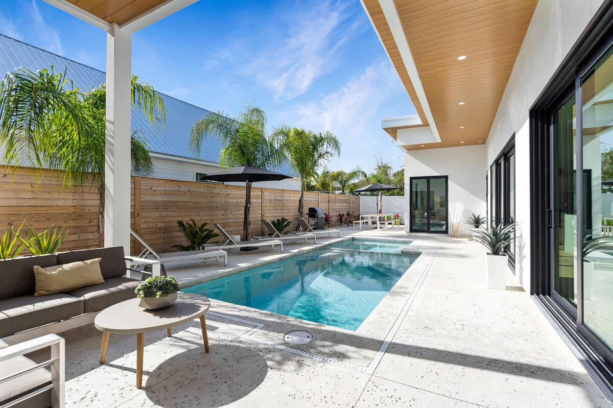 Escape into a world of luxury with unprecedented accommodations featuring extraordinary amenities! Our exquisitely designed residence offers a panoramic backyard oasis with various settings including resort style pool with loungers, private hammock, sparkling hot tub, fire pit, kitchen & wet bar, and covered dining. All nestled in a canvas rich in the hues of its natural surroundings, our coastal paradise provides a grand living experience in a gorgeous Scandinavian environment.