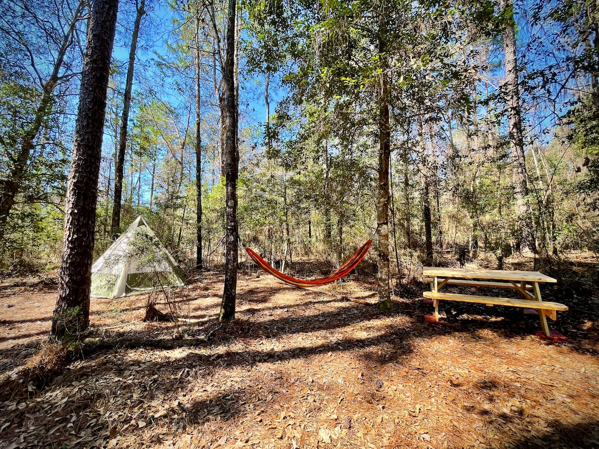 Tucked away in the quiet beauty of Sumter County, The Inn at the Forest isn’t your typical campground — it’s a peaceful escape designed for those who want nature, comfort, and connection. Glamping with all the comforts. Just show up. We have everything you need to camp with style! Bathhouse and Kitchen steps away. The river and lake are calling Reconnect with your self and the beauty of Florida Nature.