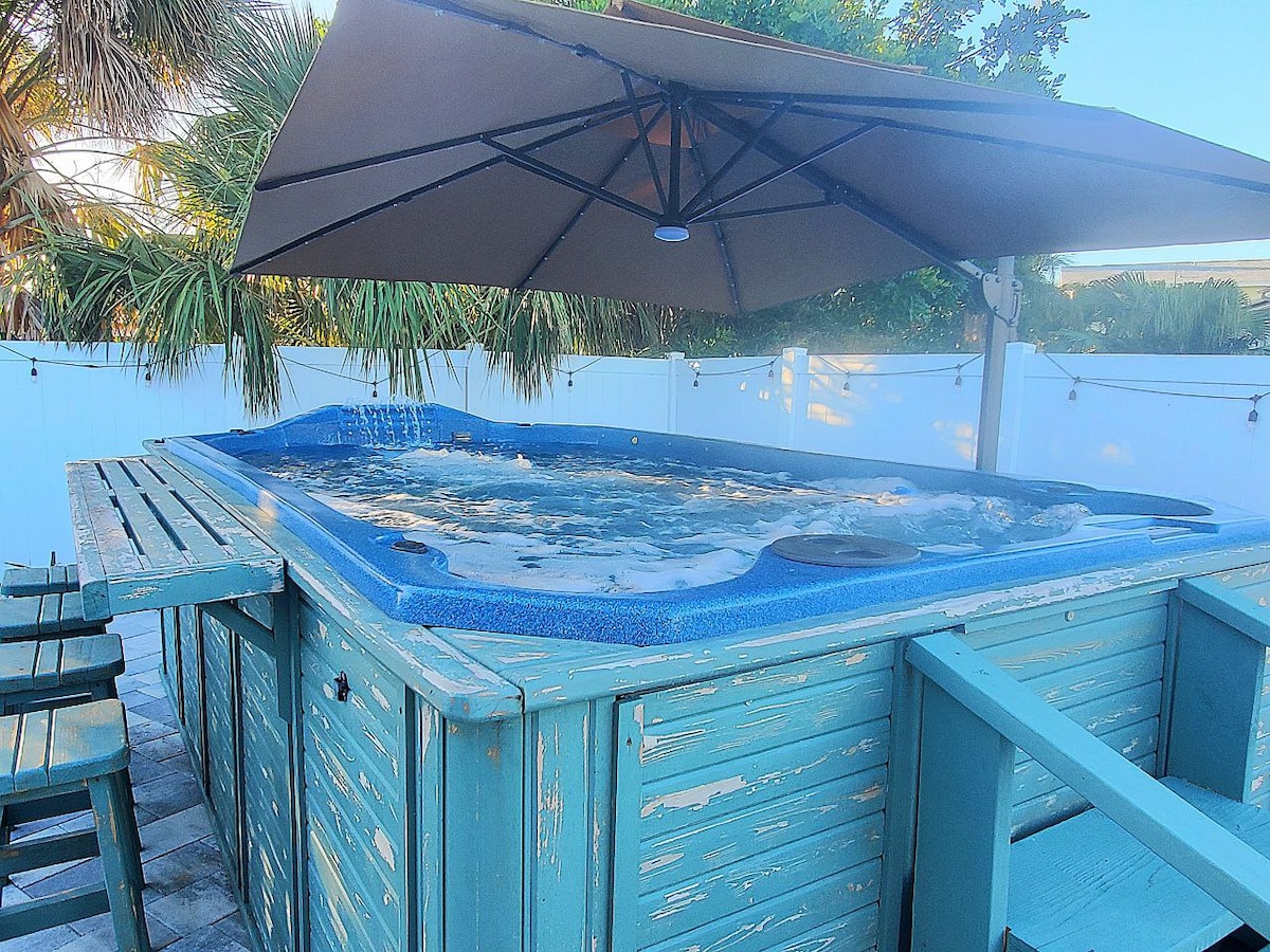 The Honey-moon Suite located in S. Cocoa Beach is a luxury Villa offering all the amenities you need to have your own private escape. The large open space backyard is the perfect retreat featuring a private 4-person hot tub, 60" flat screen TV, a "Dream sleep" king bed, queen sleeper sofa, desk space, a full kitchen, stylish walk-in shower. For those that can't disconnect there's fast 300mb download speeds for your streaming devises.